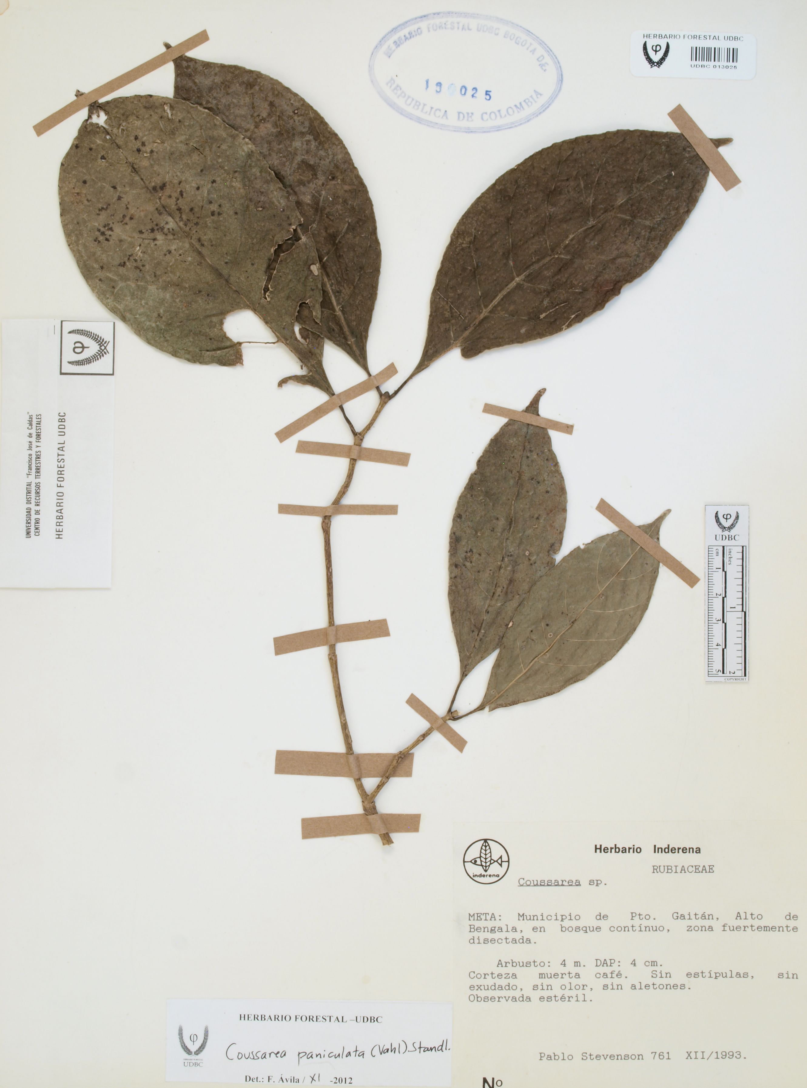 Fotografía del ejemplar Stevenson, P. 761, determinado como Coussarea paniculata en el año 2012