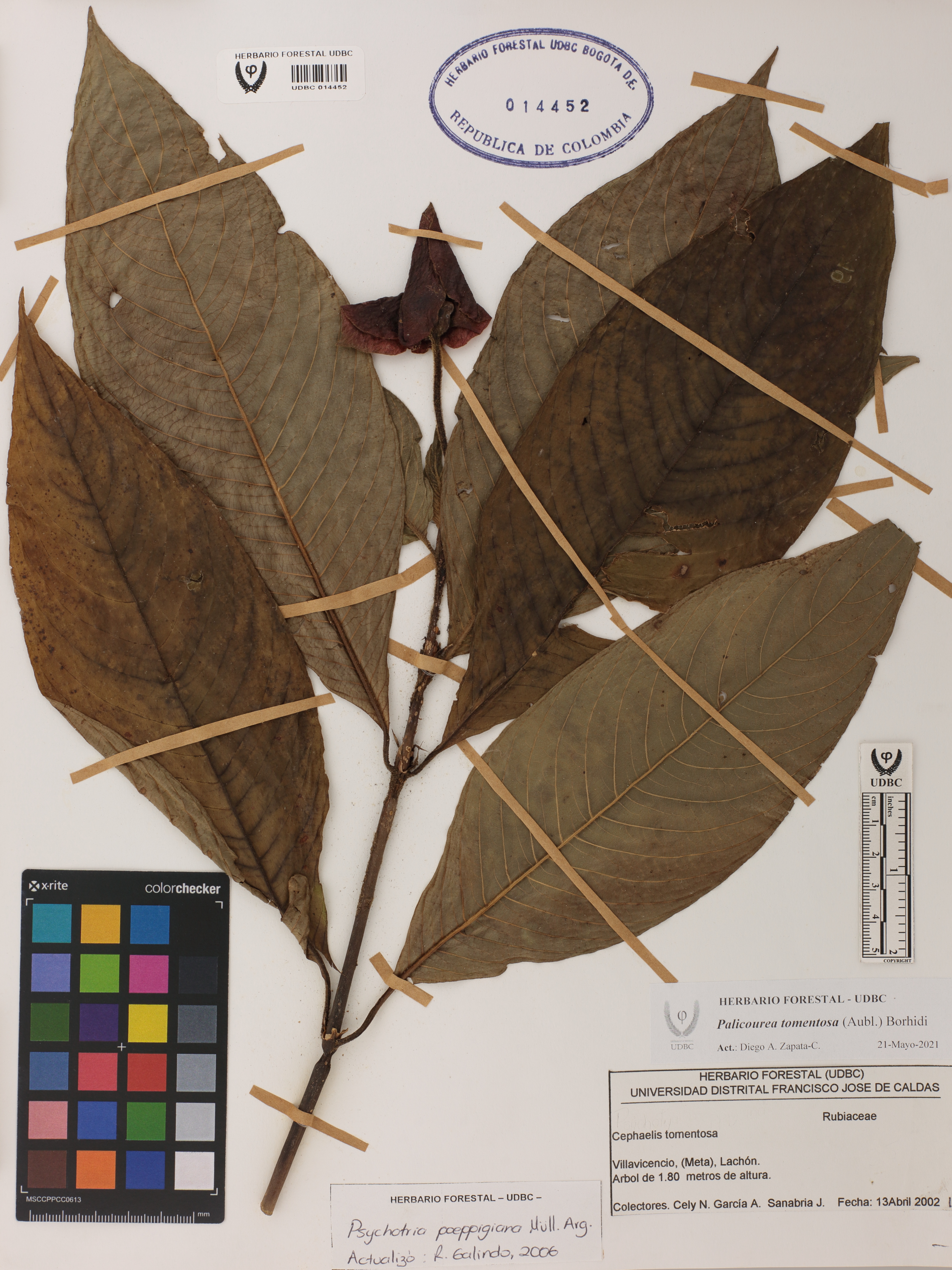 Fotografía del ejemplar Cely, N. 19, determinado como Palicourea tomentosa en el año 2006