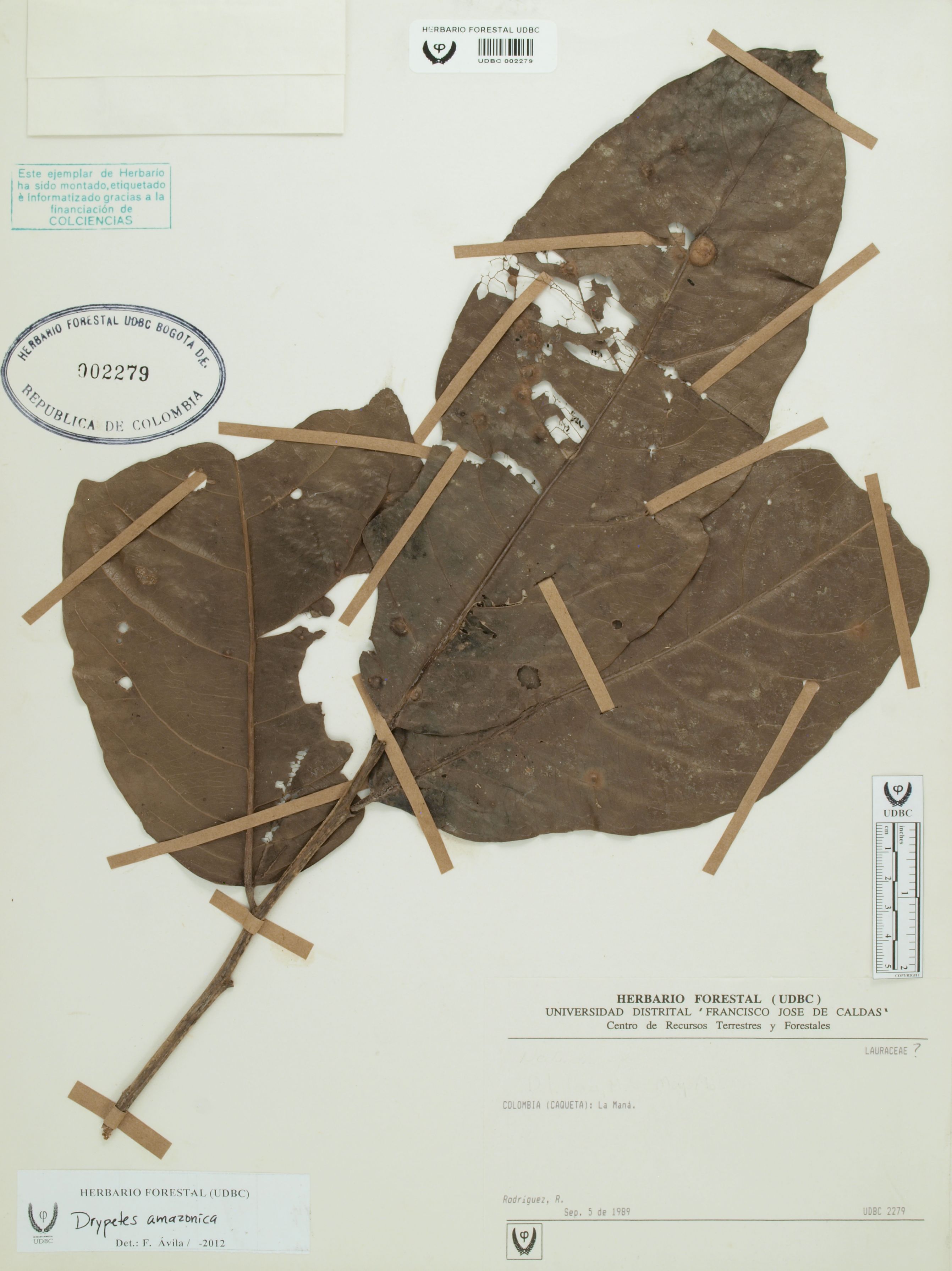 Fotografía del ejemplar Rodríguez, R., determinado como Drypetes amazonica en el año 2012