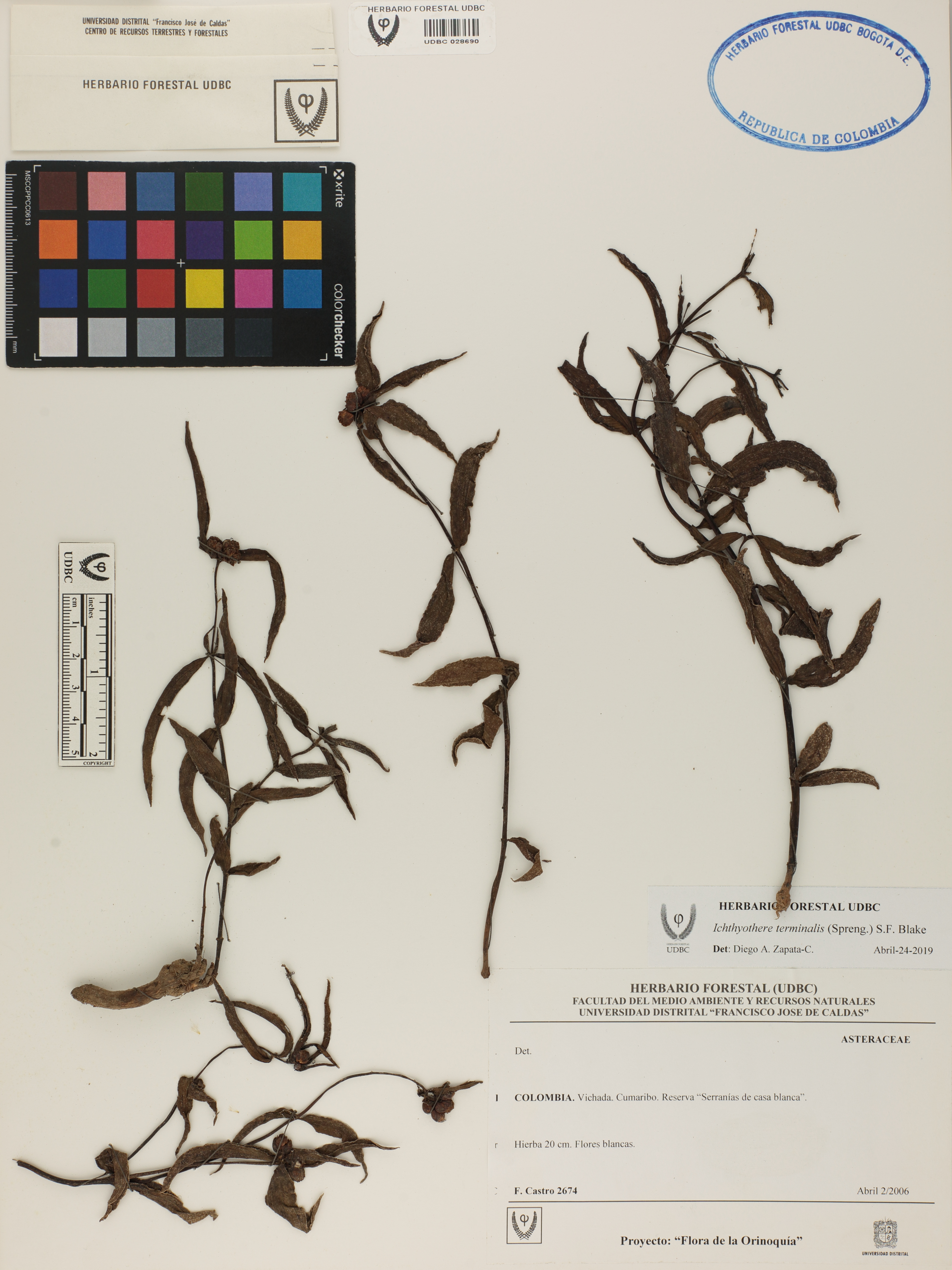 Fotografía del ejemplar Castro, F. 2674, determinado como Ichthyothere terminalis en el año 2019