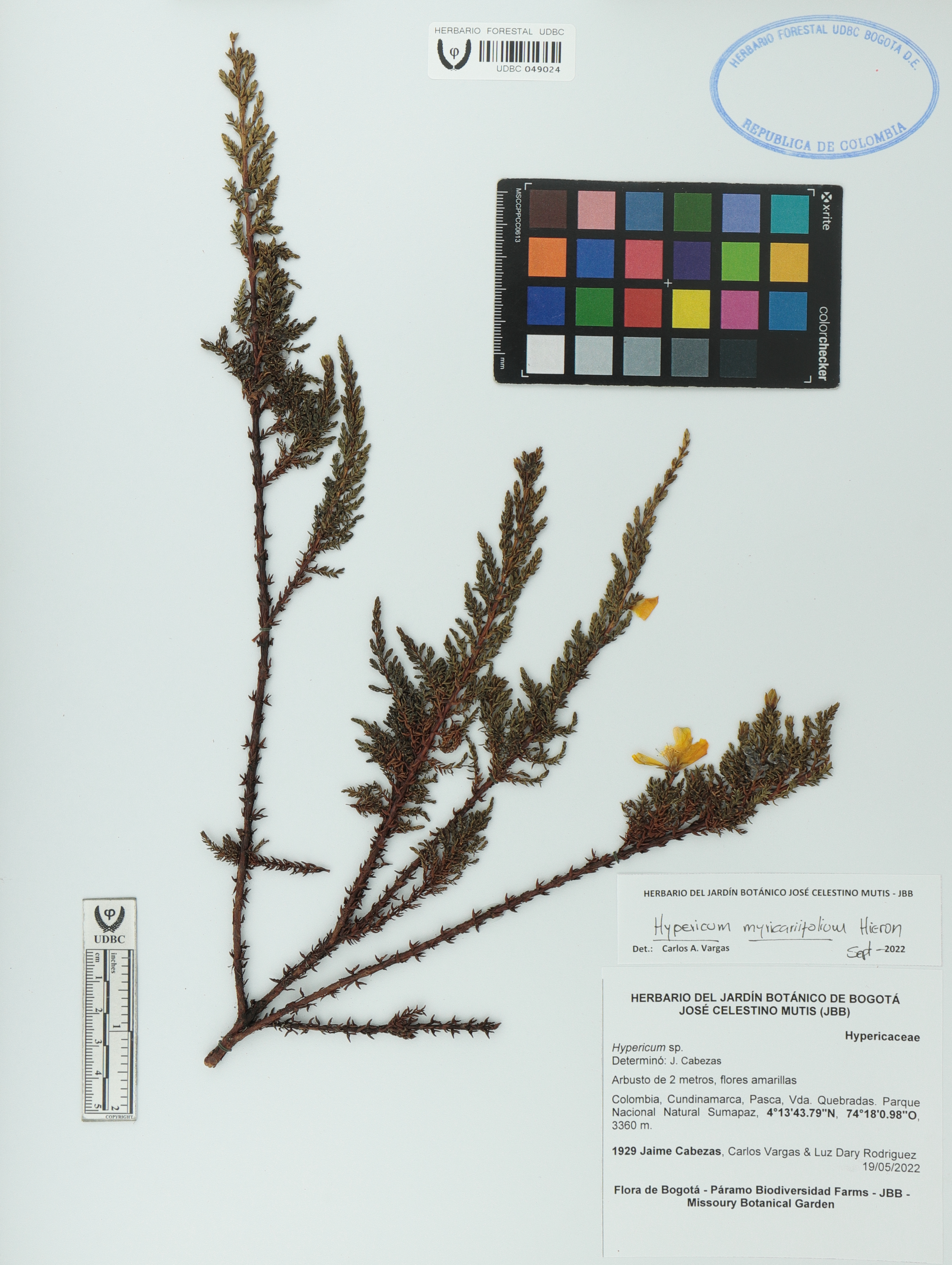 Fotografía del ejemplar Cabezas, J. 1929, determinado como Hypericum myricariifolium en el año 2022