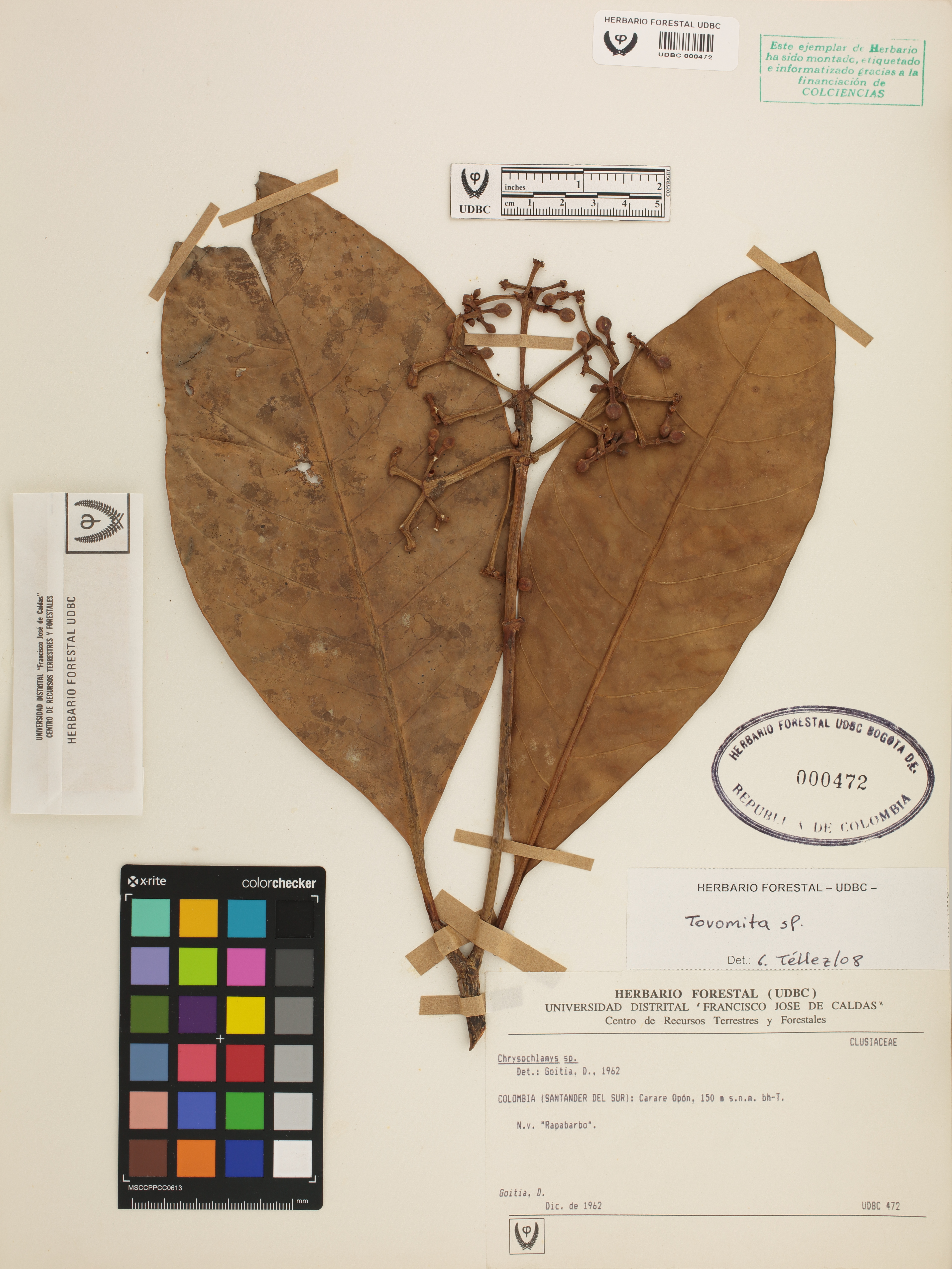 Fotografía del ejemplar Goitia, D., determinado como Tovomita sp. en el año 2008