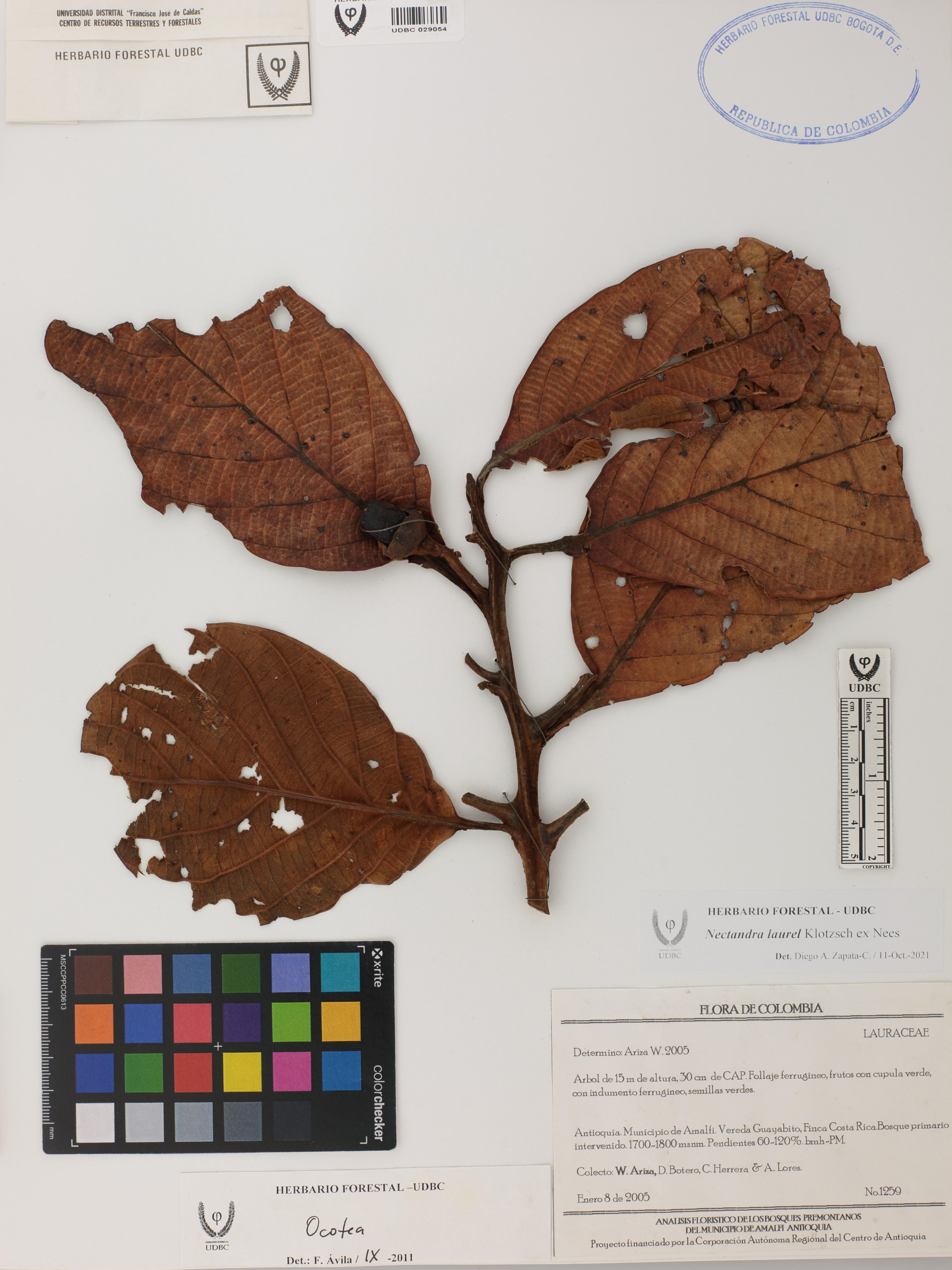 Fotografía del ejemplar Ariza, W. 1259, determinado como Nectandra laurel en el año 2021