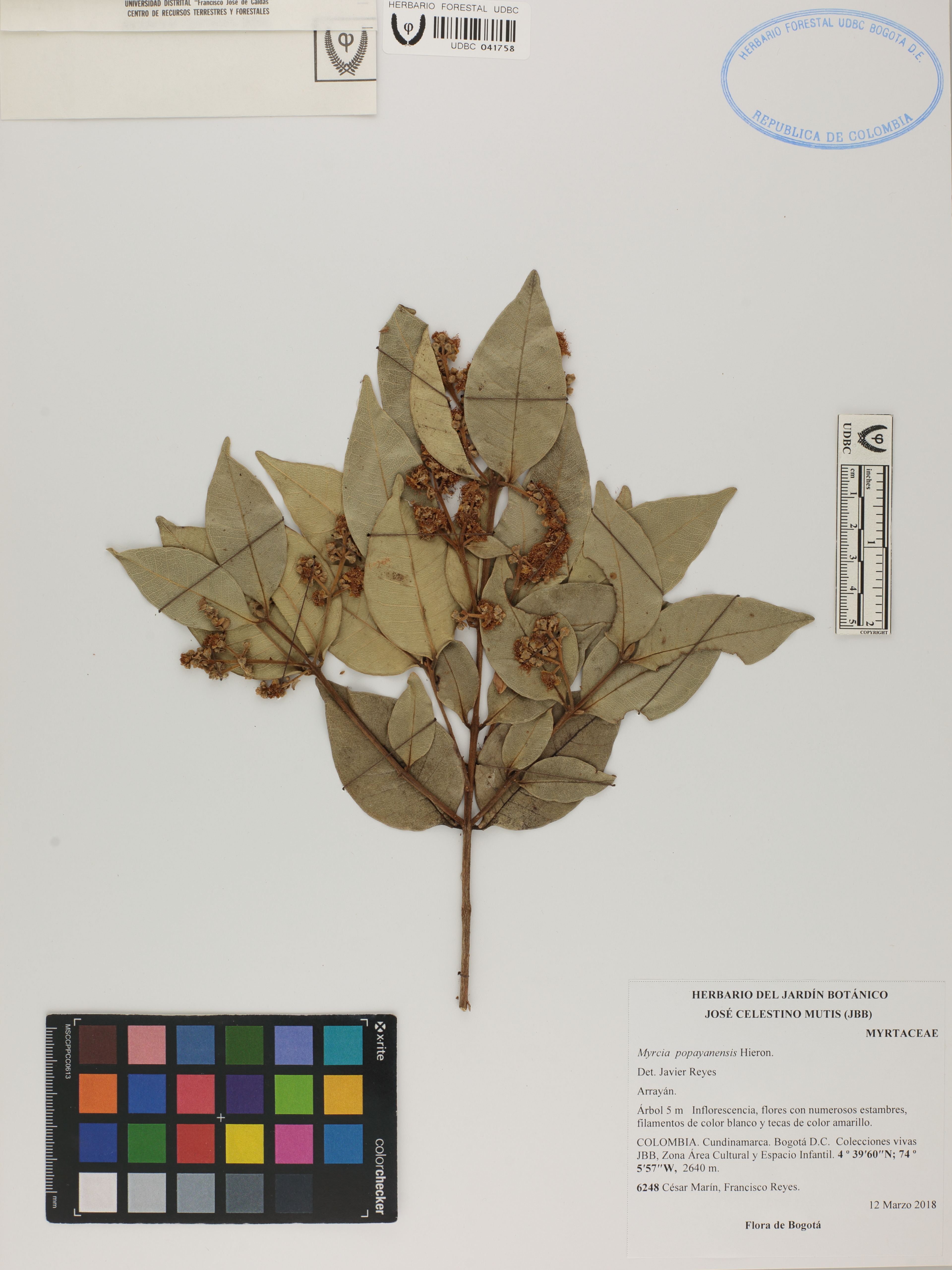 Fotografía del ejemplar Marín, C. 6248, determinado como Myrcia popayanensis