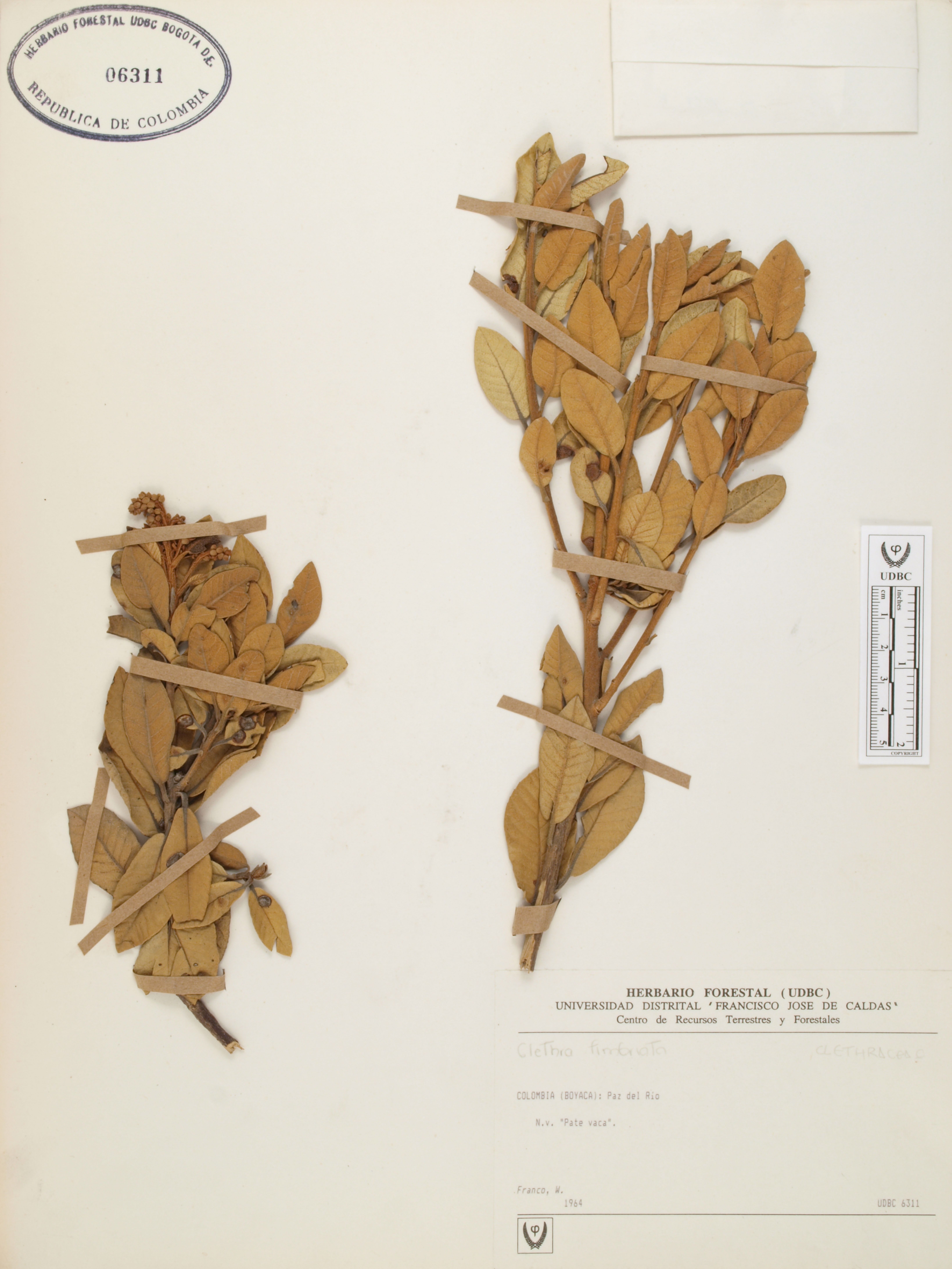 Fotografía del ejemplar Franco, W., determinado como Clethra fimbriata en el año 2004