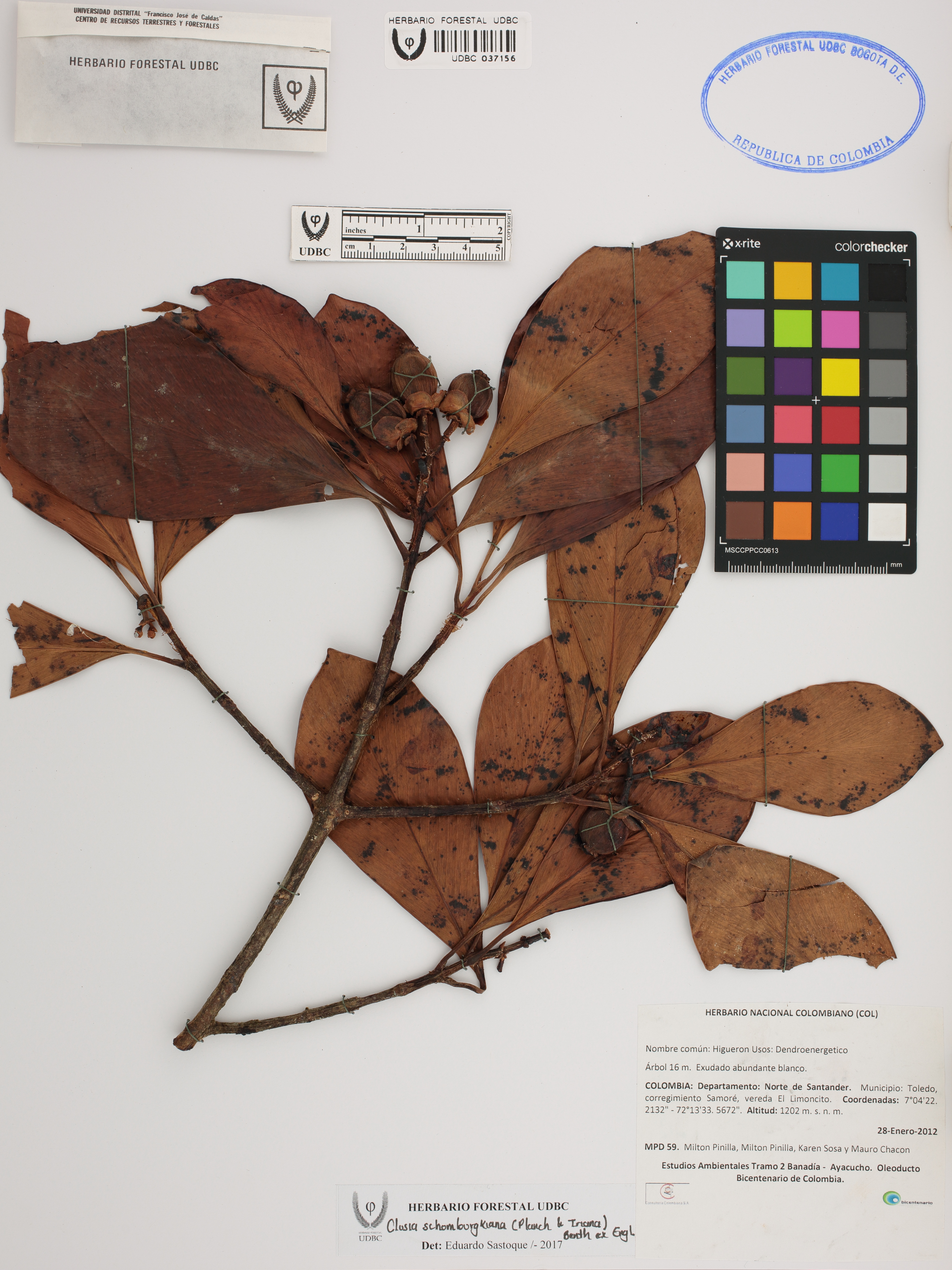 Fotografía del ejemplar Pinilla, M. 59, determinado como Clusia schomburgkiana en el año 2017