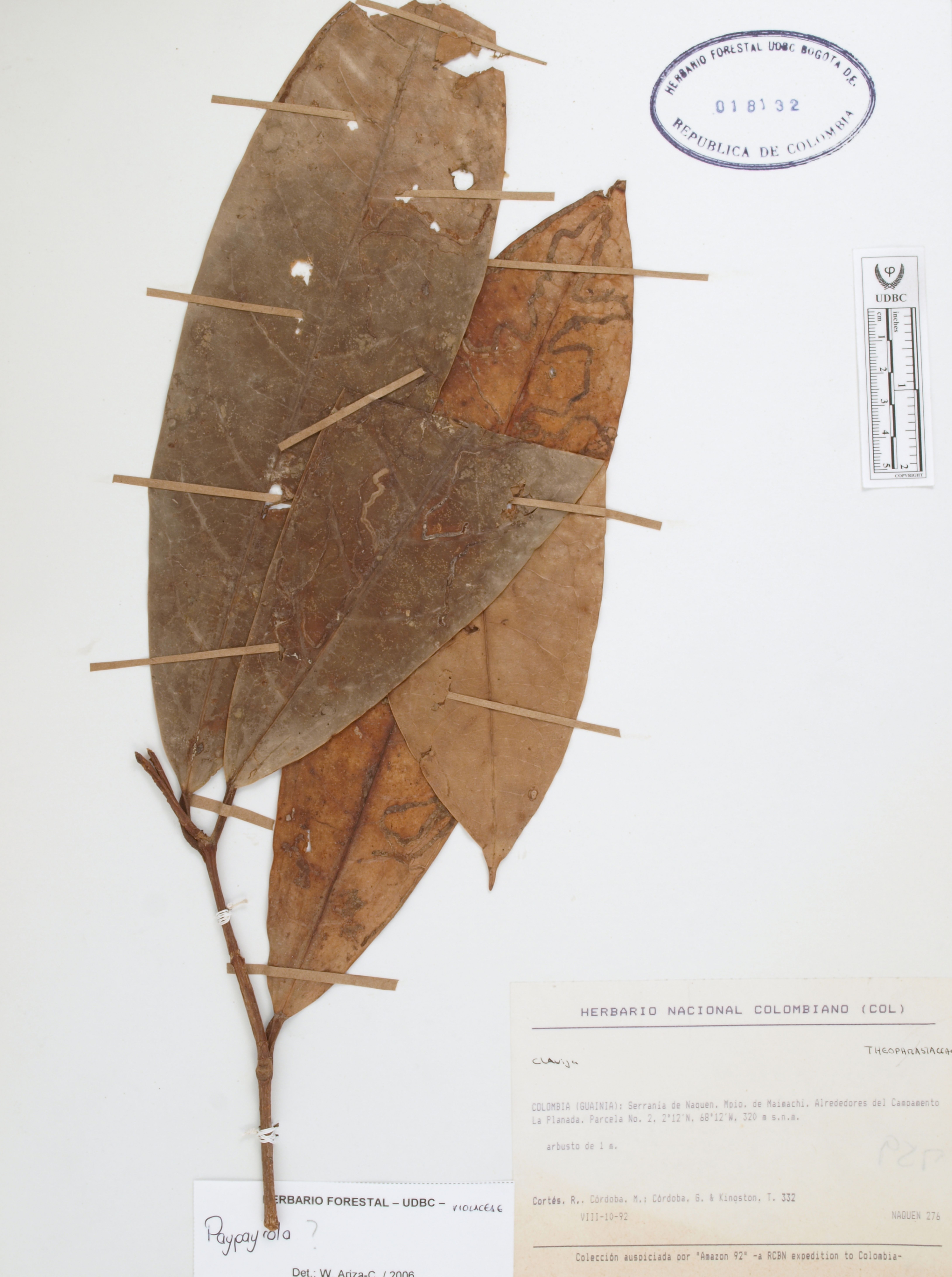Fotografía del ejemplar Cortés-B., R. 332, determinado como Paypayrola sp. en el año 2006