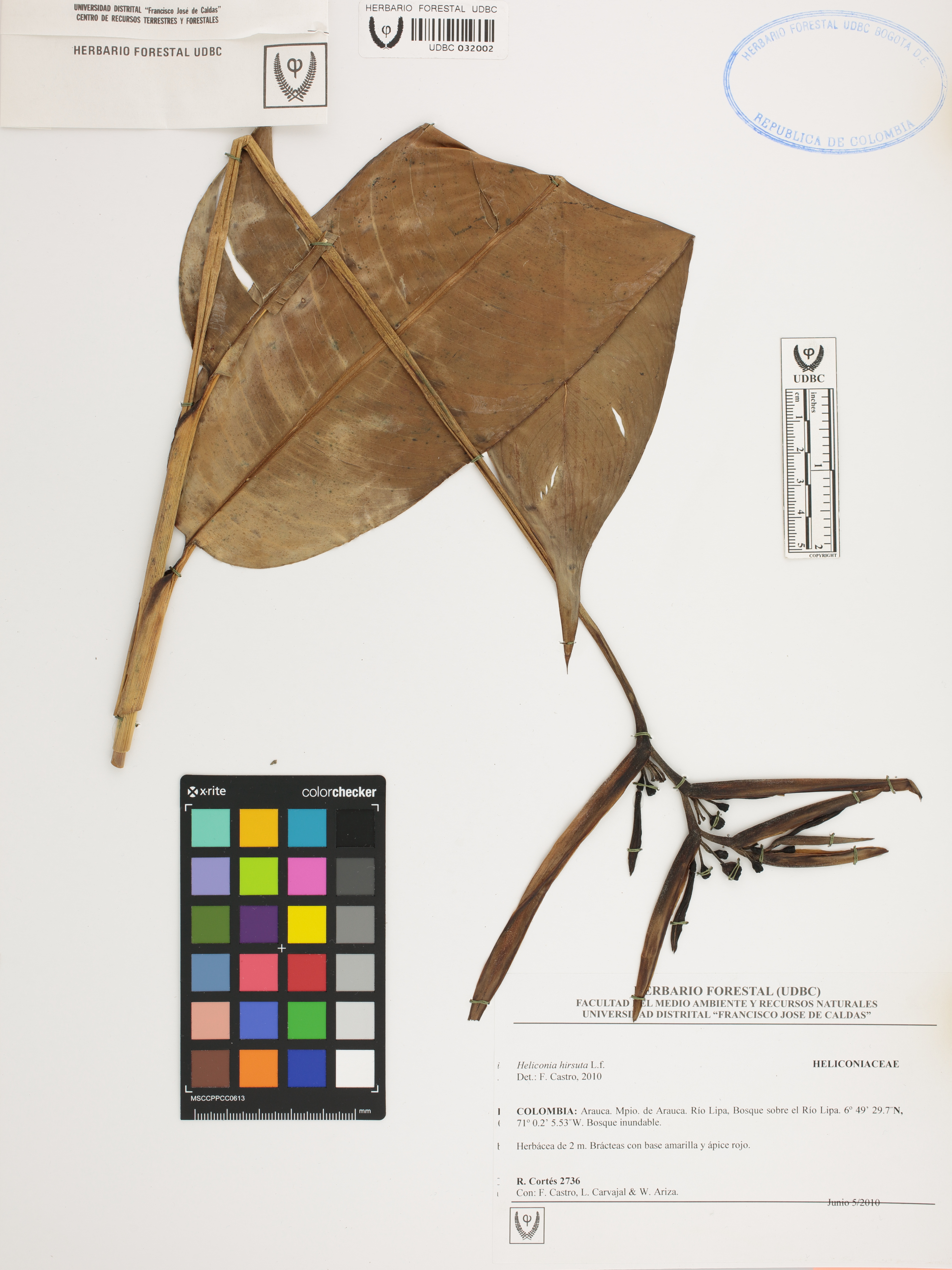Fotografía del ejemplar Cortés, R. 2736, determinado como Heliconia hirsuta en el año 2010