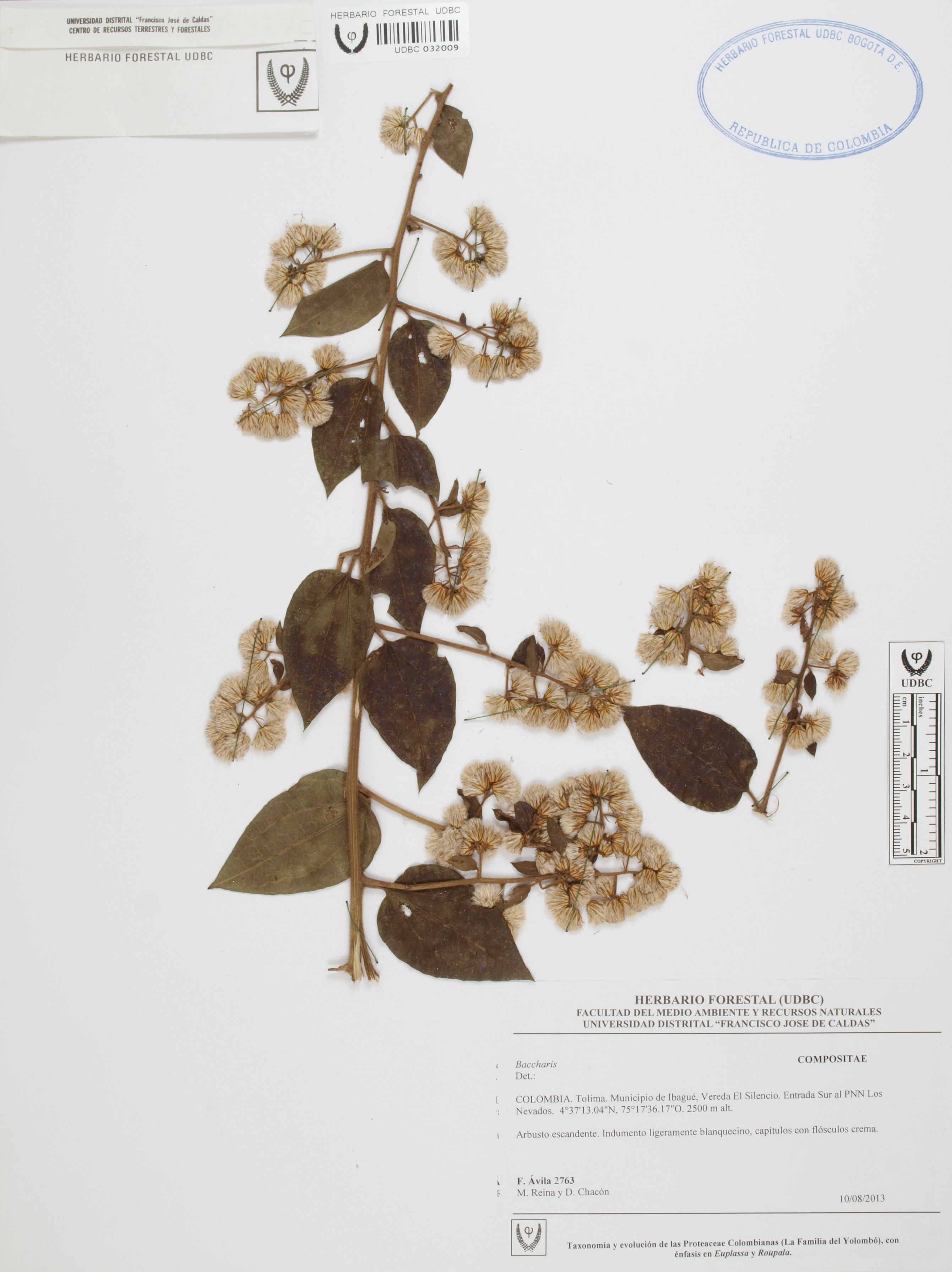 Fotografía del ejemplar Ávila, F. 2763, determinado como Baccharis sp.