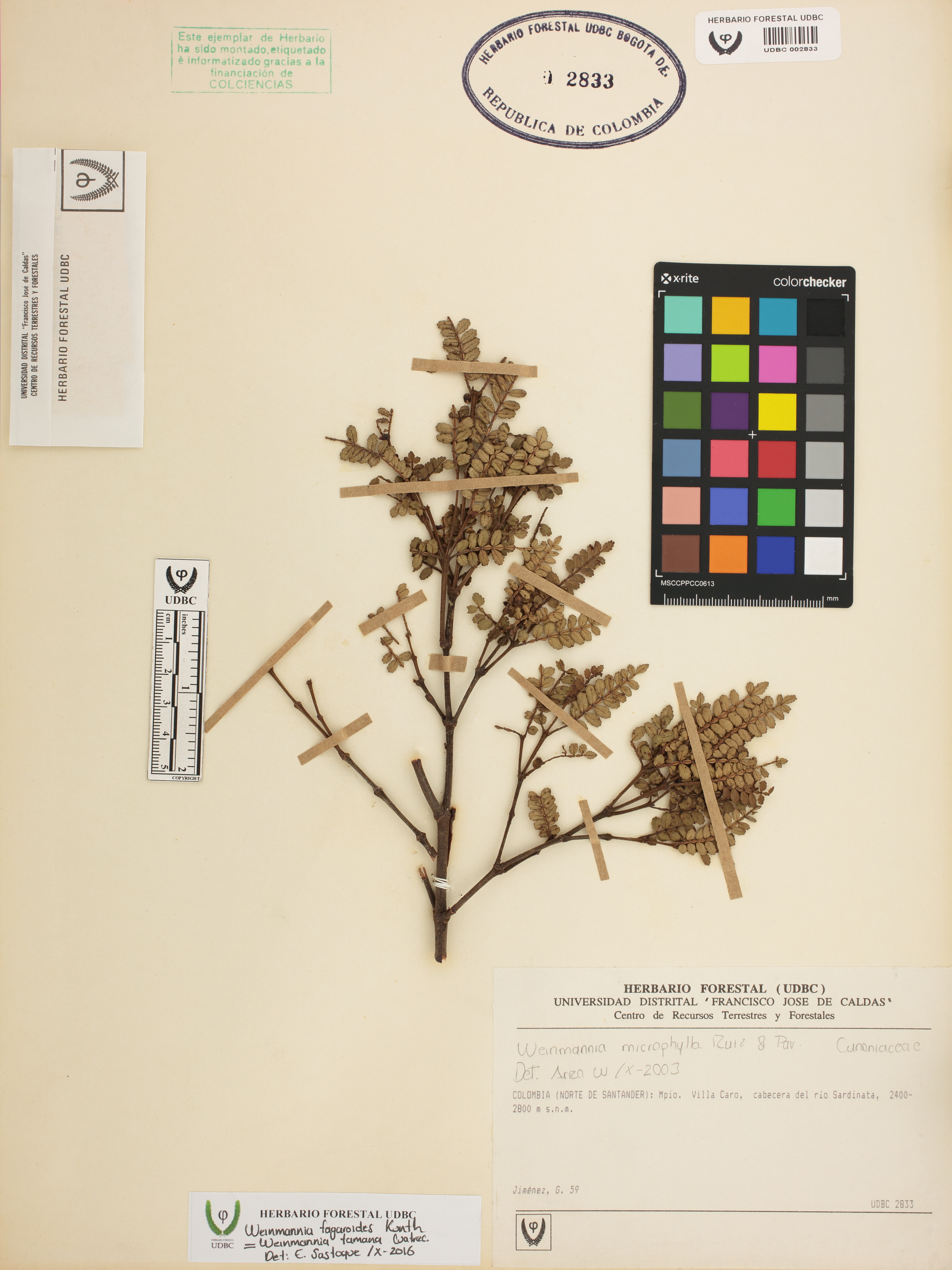 Fotografía del ejemplar Jiménez, G. 59, determinado como Weinmannia fagaroides en el año 2016