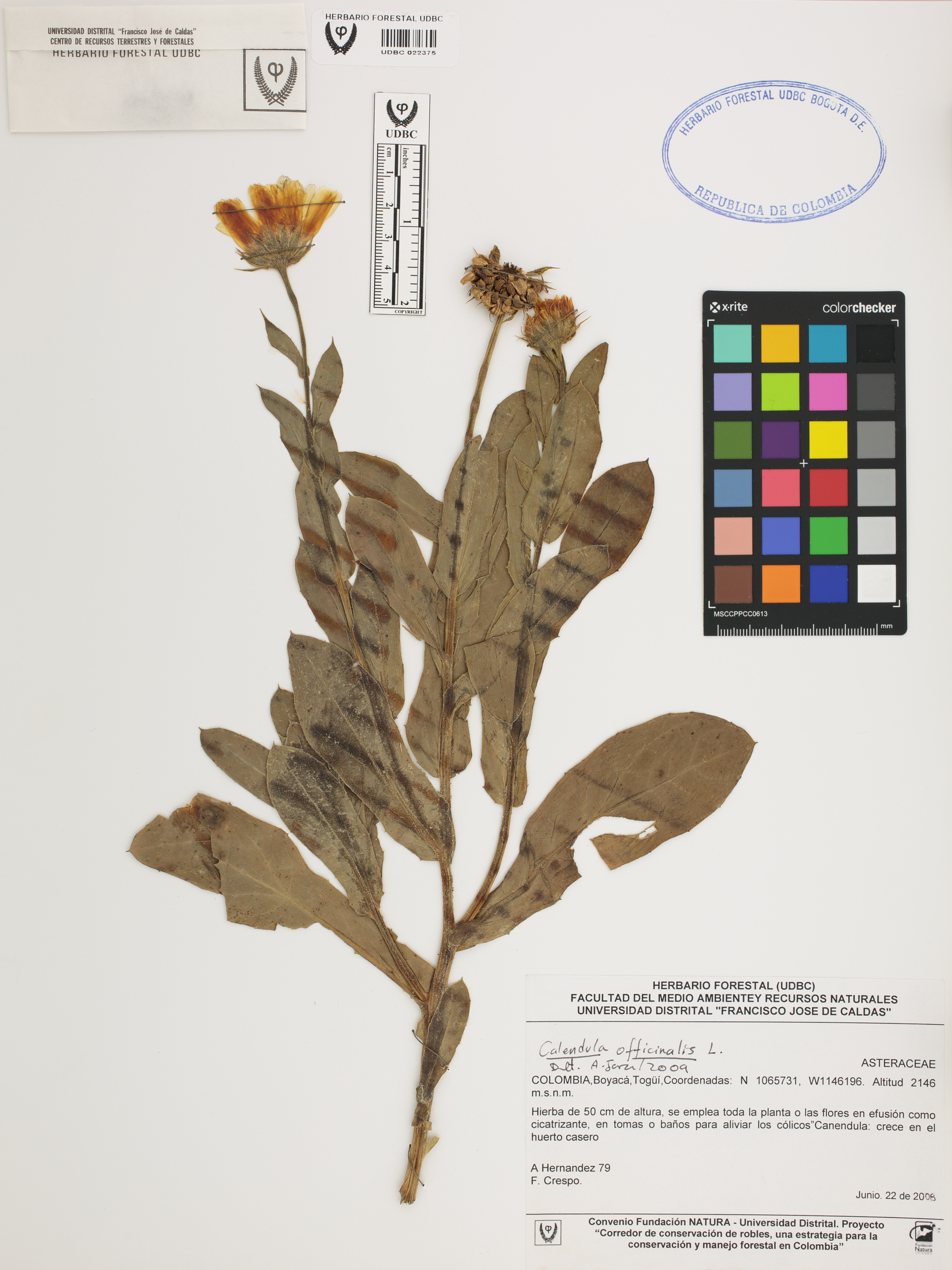 Fotografía del ejemplar Hernández, A. 79, determinado como Calendula officinalis en el año 2009