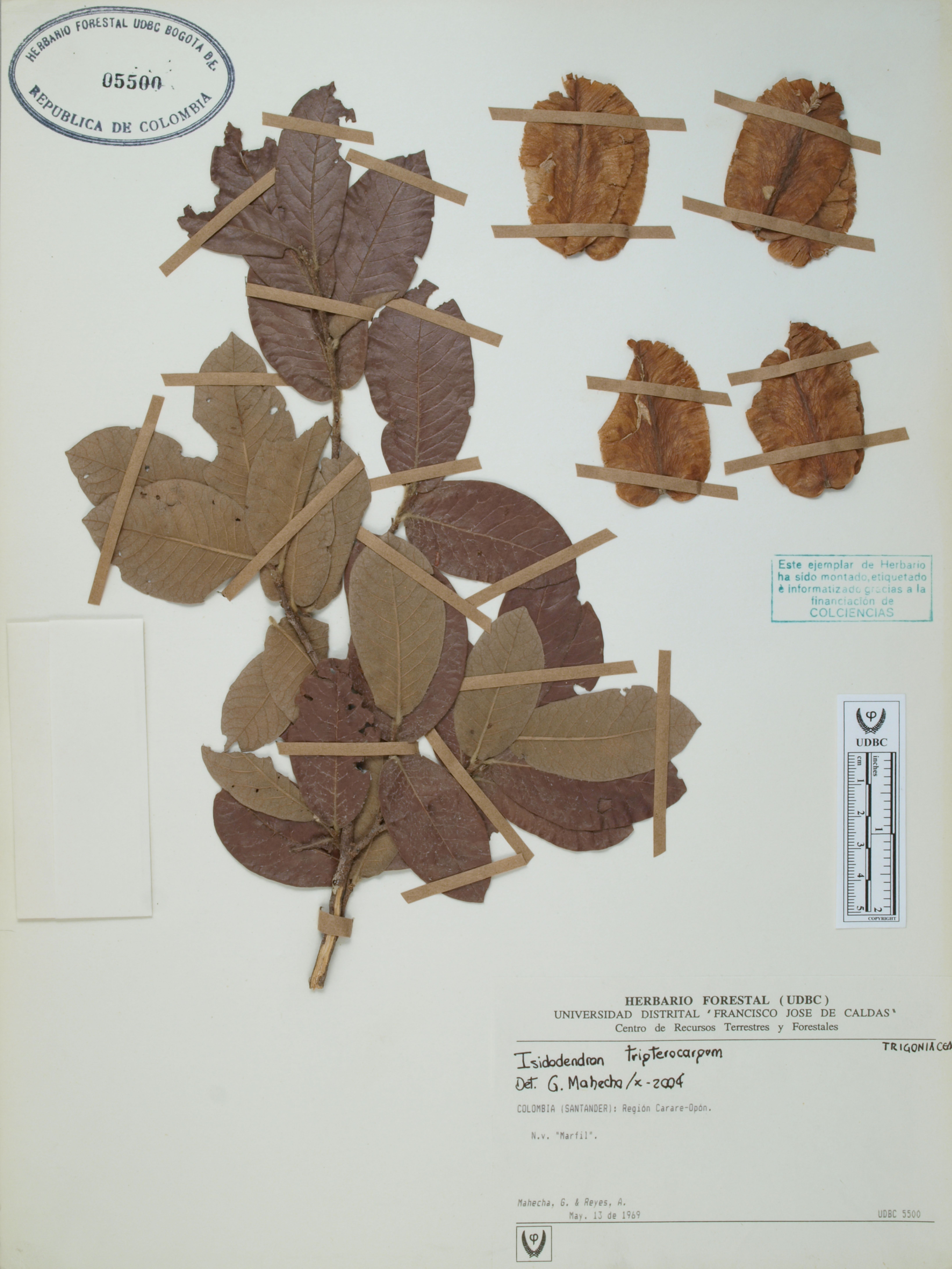 Fotografía del ejemplar Mahecha, G., determinado como Isidodendron tripterocarpum en el año 2004