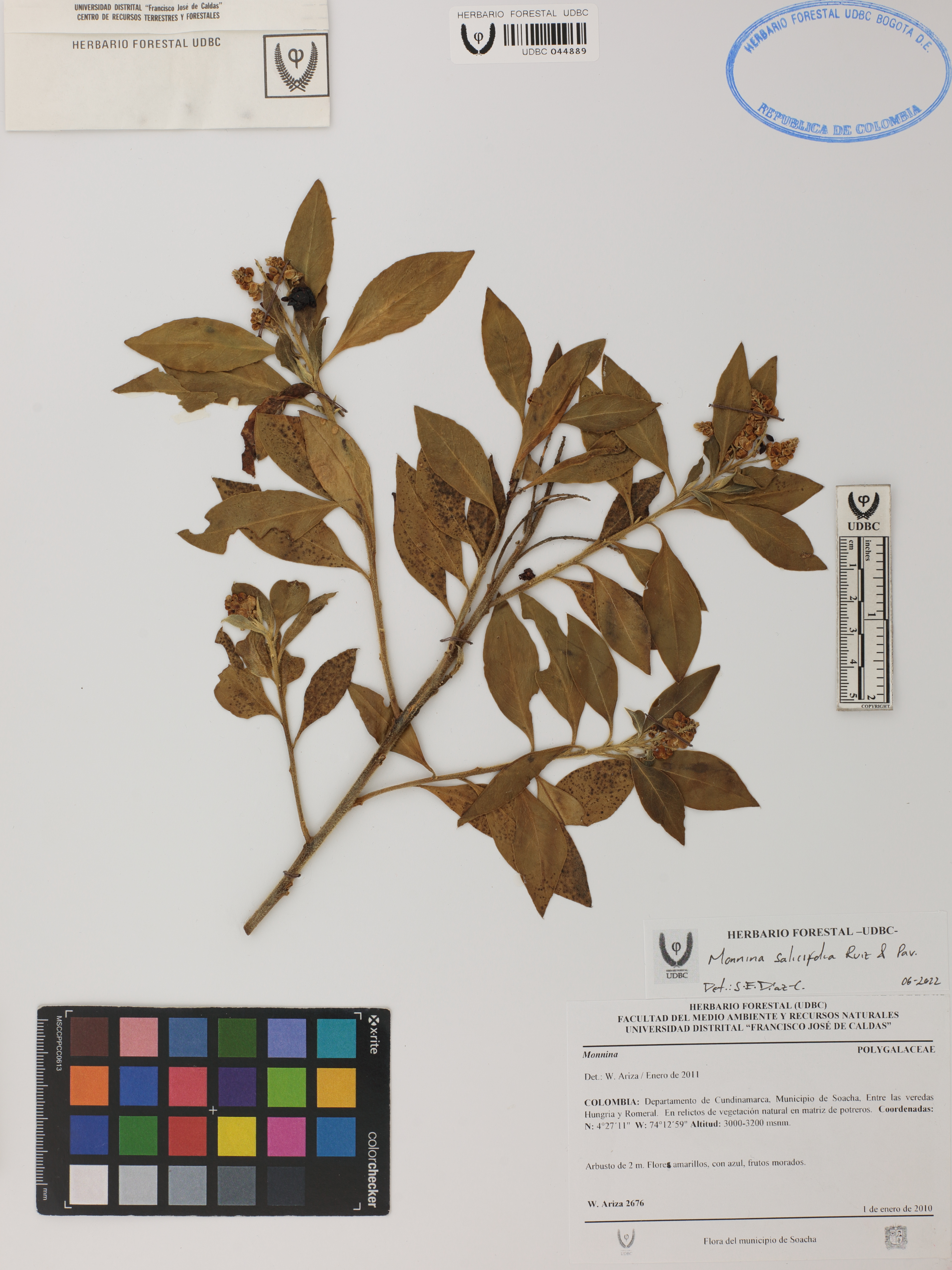 Fotografía del ejemplar Ariza-Cortés, W. 2676, determinado como Monnina salicifolia en el año 2022