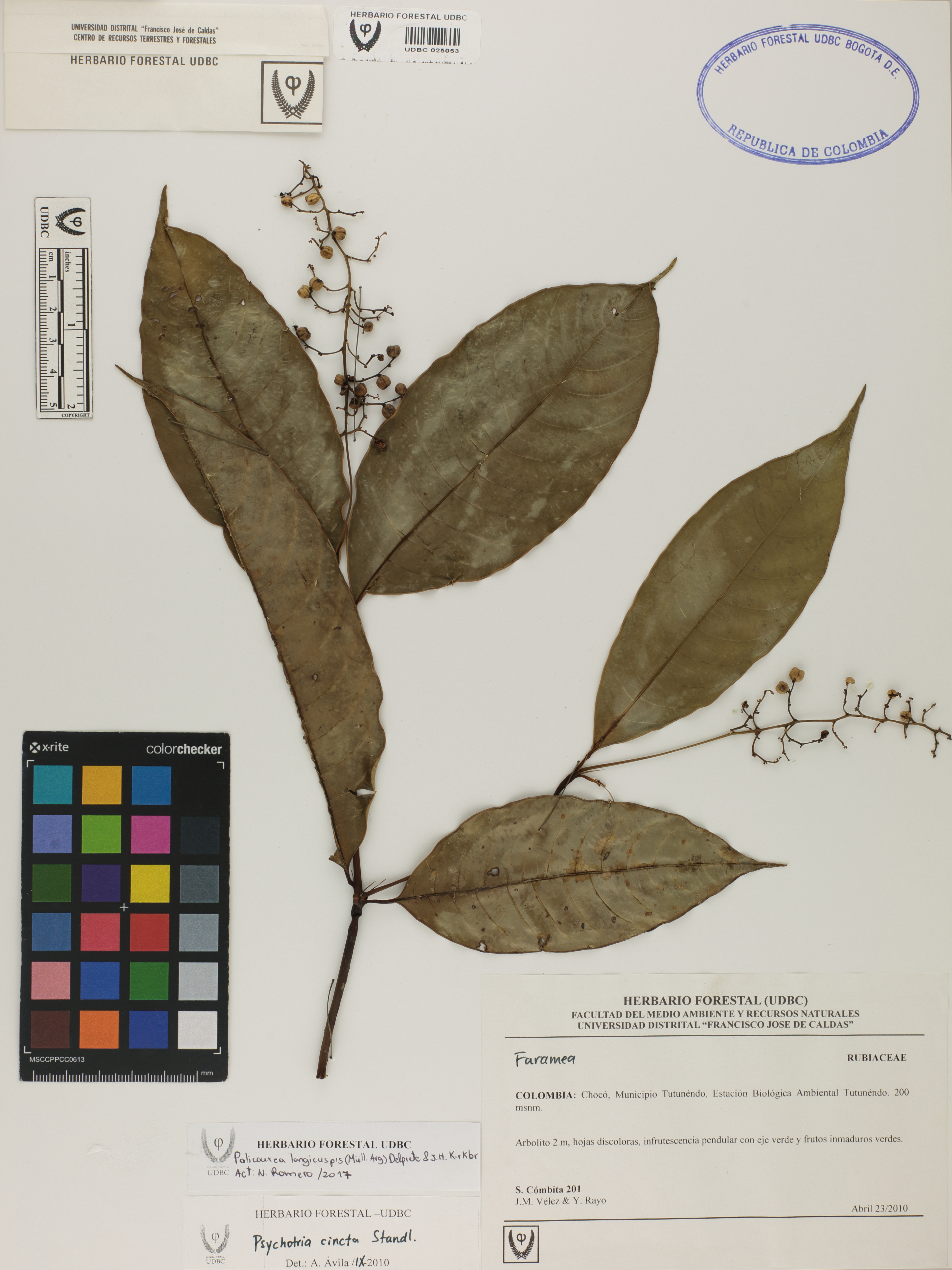 Fotografía del ejemplar Cómbita, S. 201, determinado como Palicourea longicuspis en el año 2010