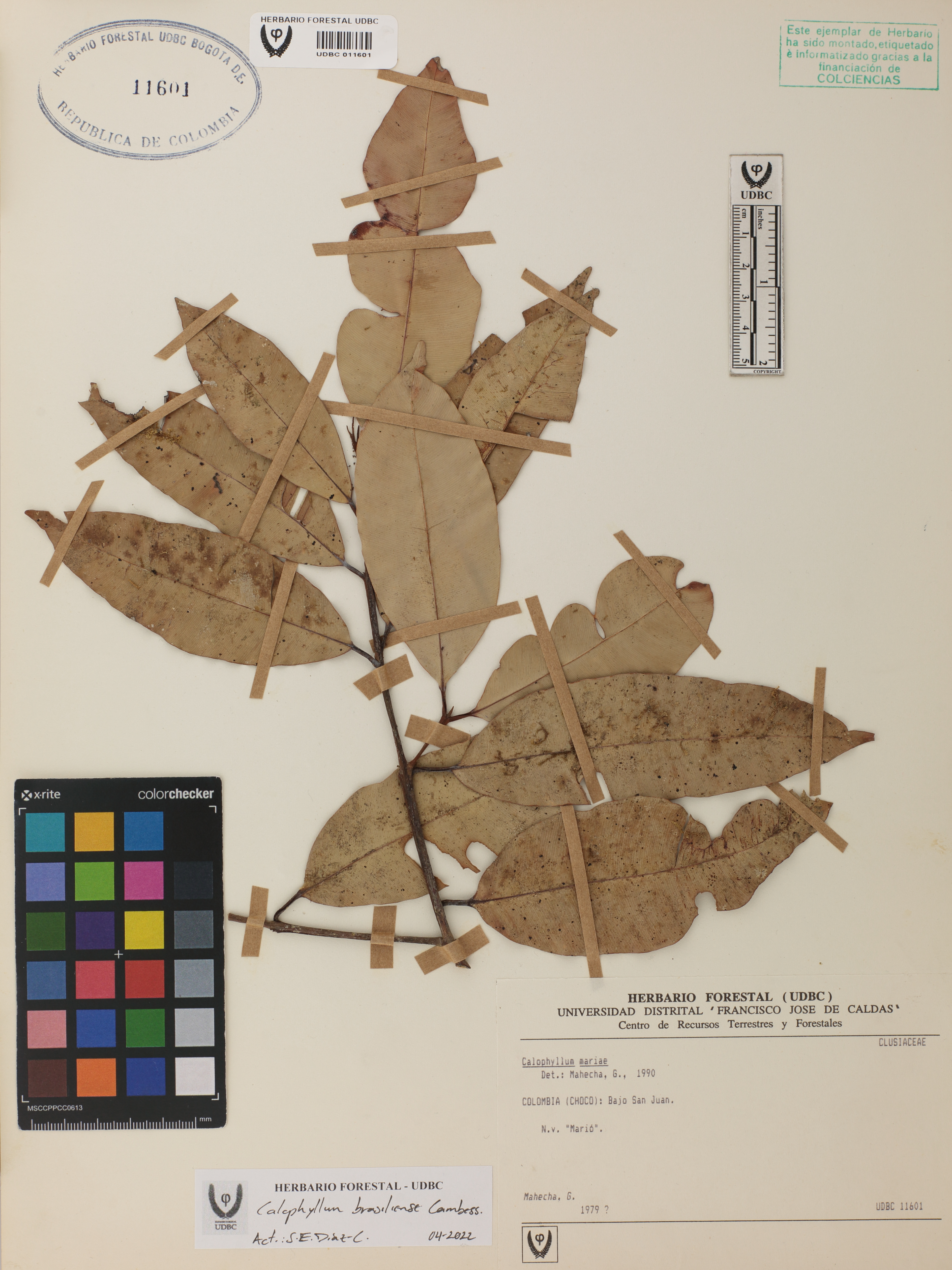 Fotografía del ejemplar Mahecha, G., determinado como Calophyllum brasiliense en el año 1990