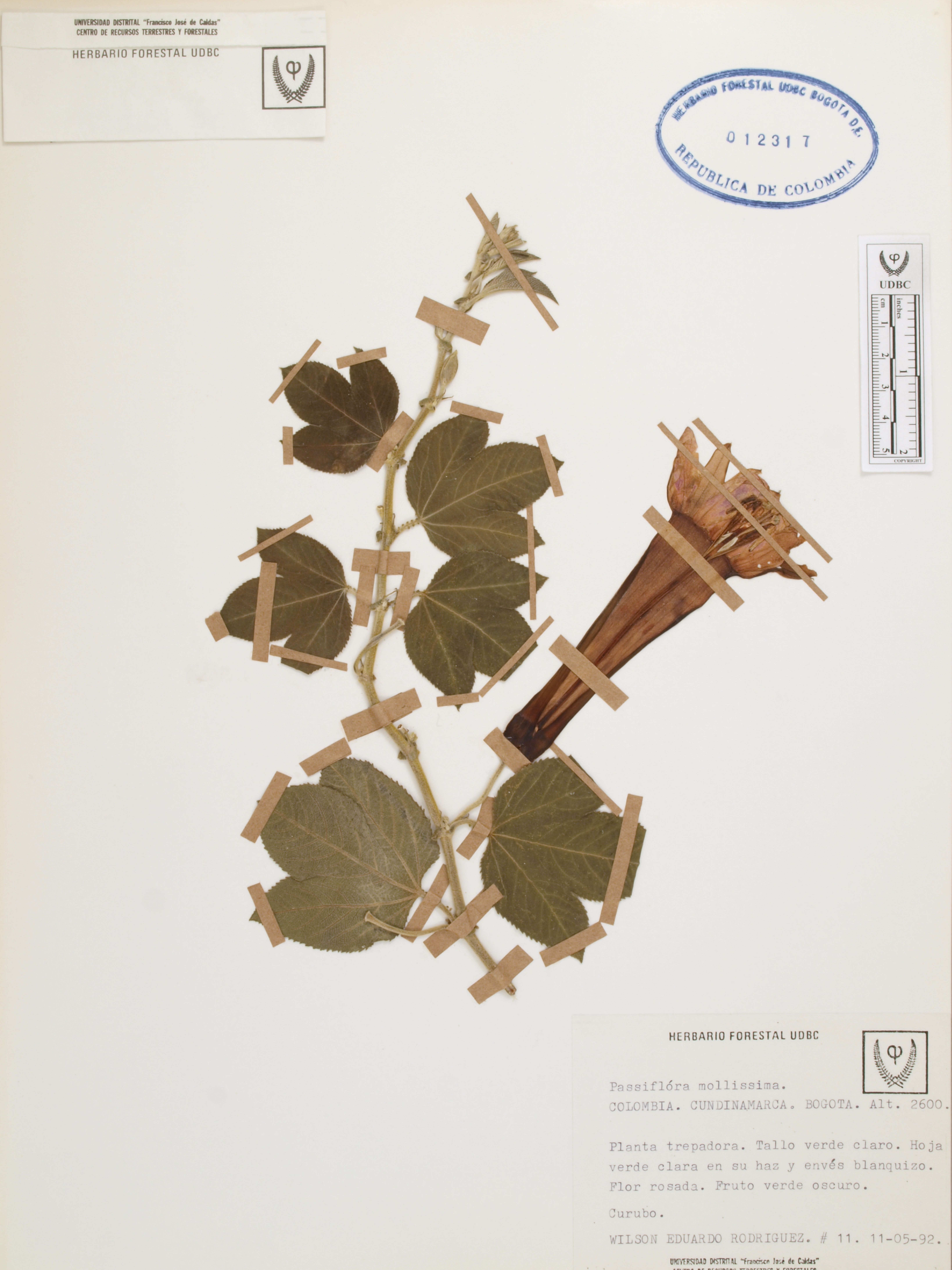 Fotografía del ejemplar Rodríguez, W. 11, determinado como Passiflora mollissima