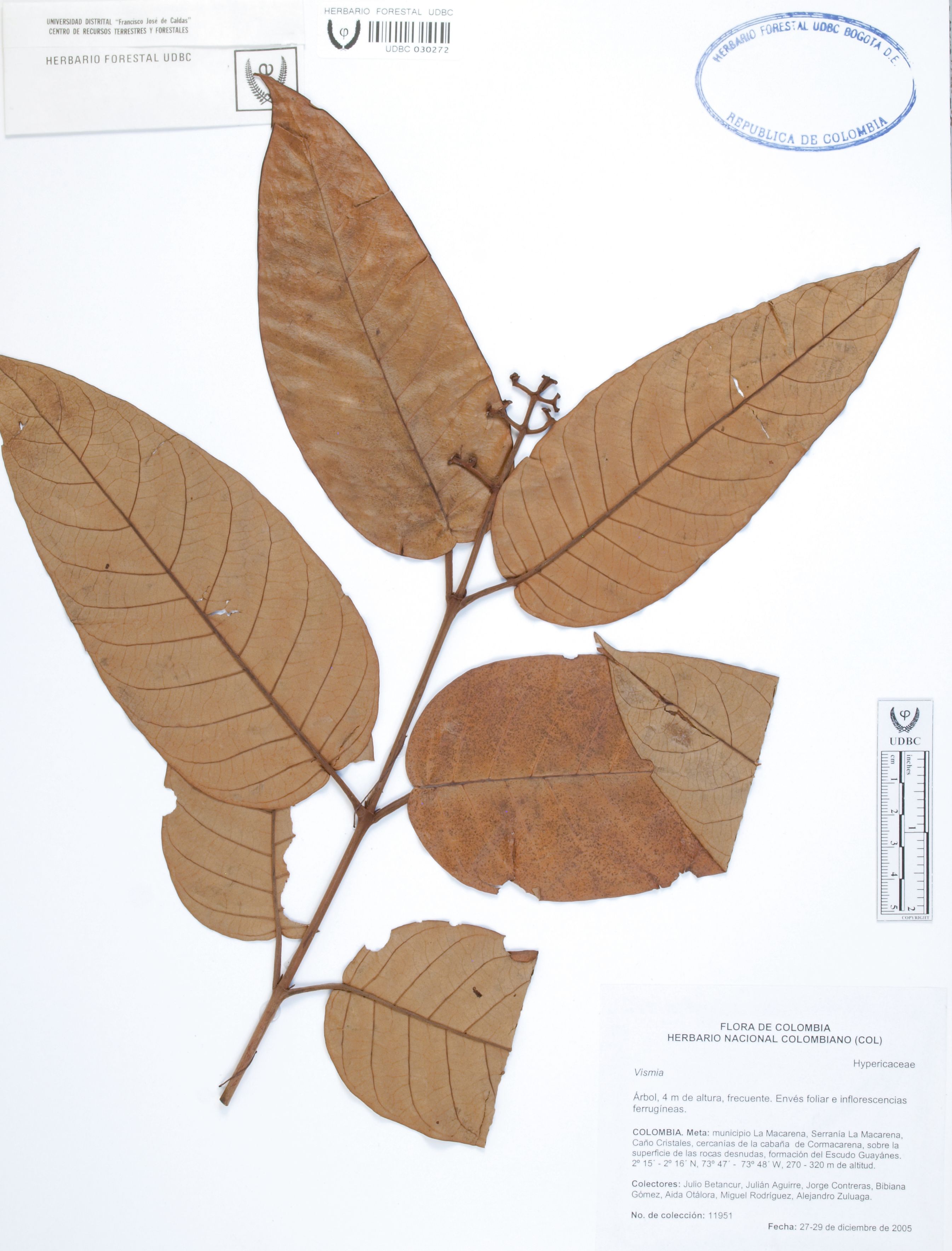 Fotografía del ejemplar Betancur, J. 11951, determinado como Vismia sp.