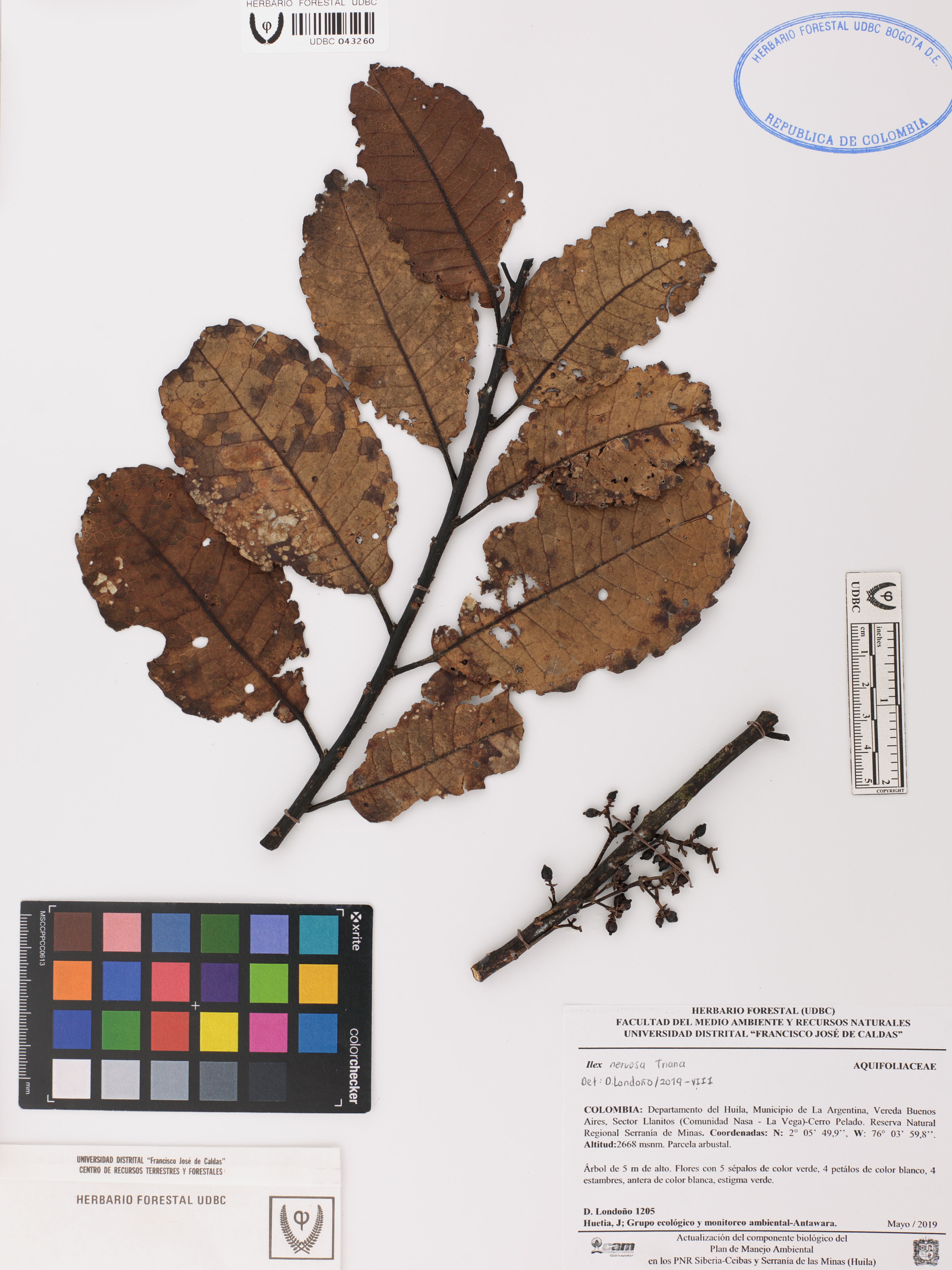 | dc.description | Fotografía del ejemplar Londoño, D. 1205, determinado como Ilex nervosa en el año 2019 | |