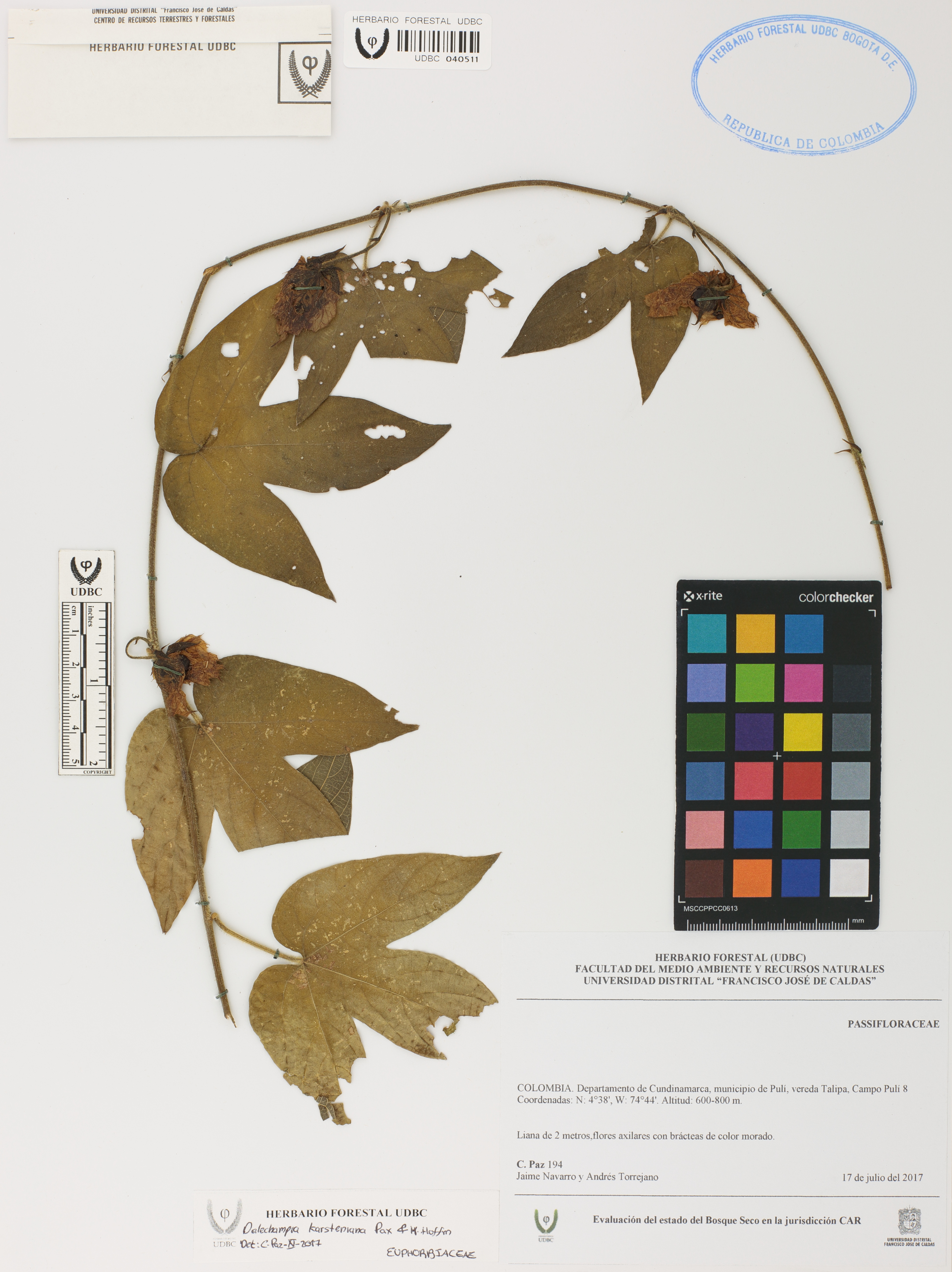 | dc.description | Fotografía del ejemplar Paz, C. 194, determinado como Dalechampia karsteniana en el año 2017 | |