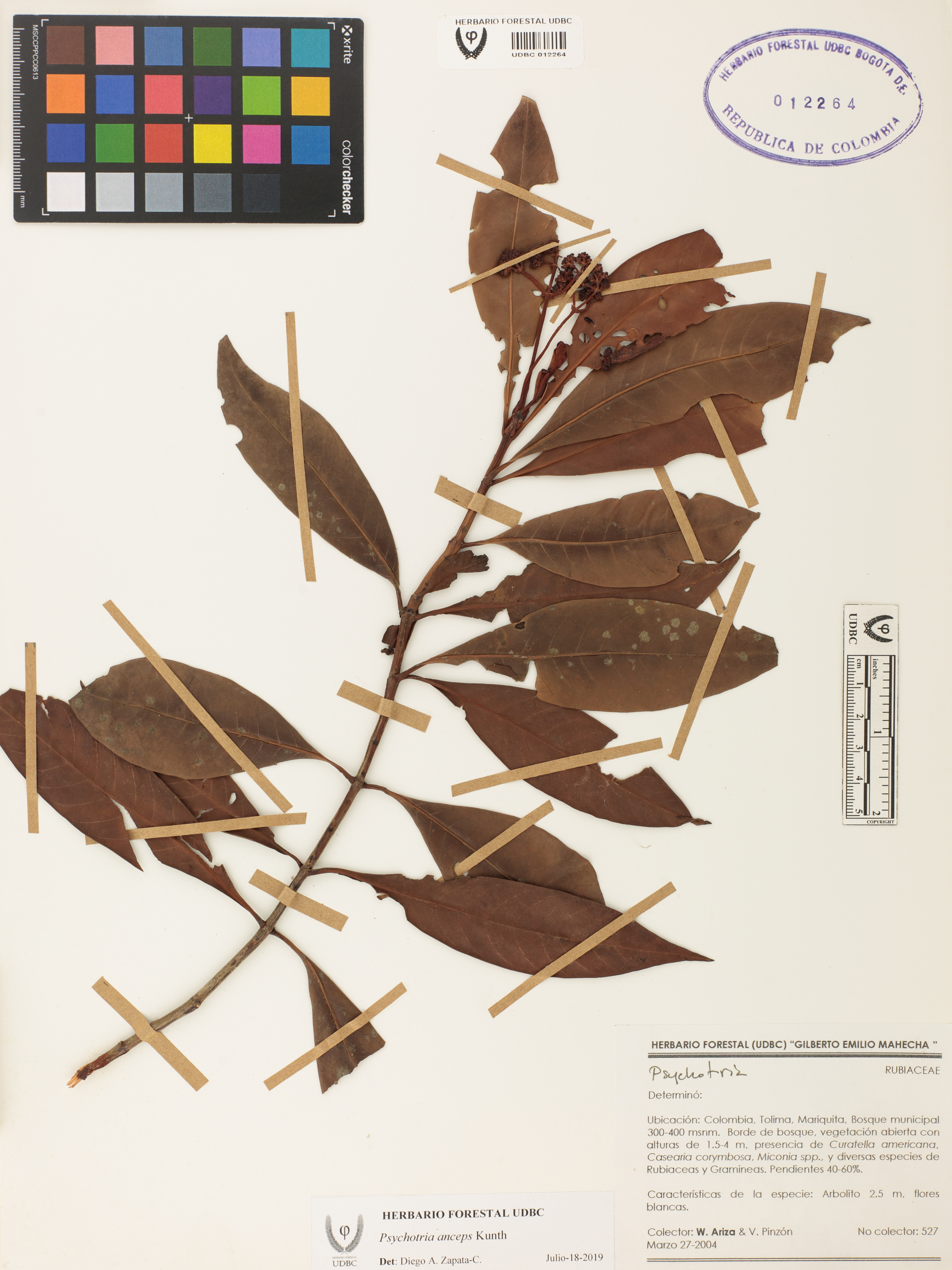 Fotografía del ejemplar Ariza, W. 527, determinado como Psychotria anceps en el año 2019