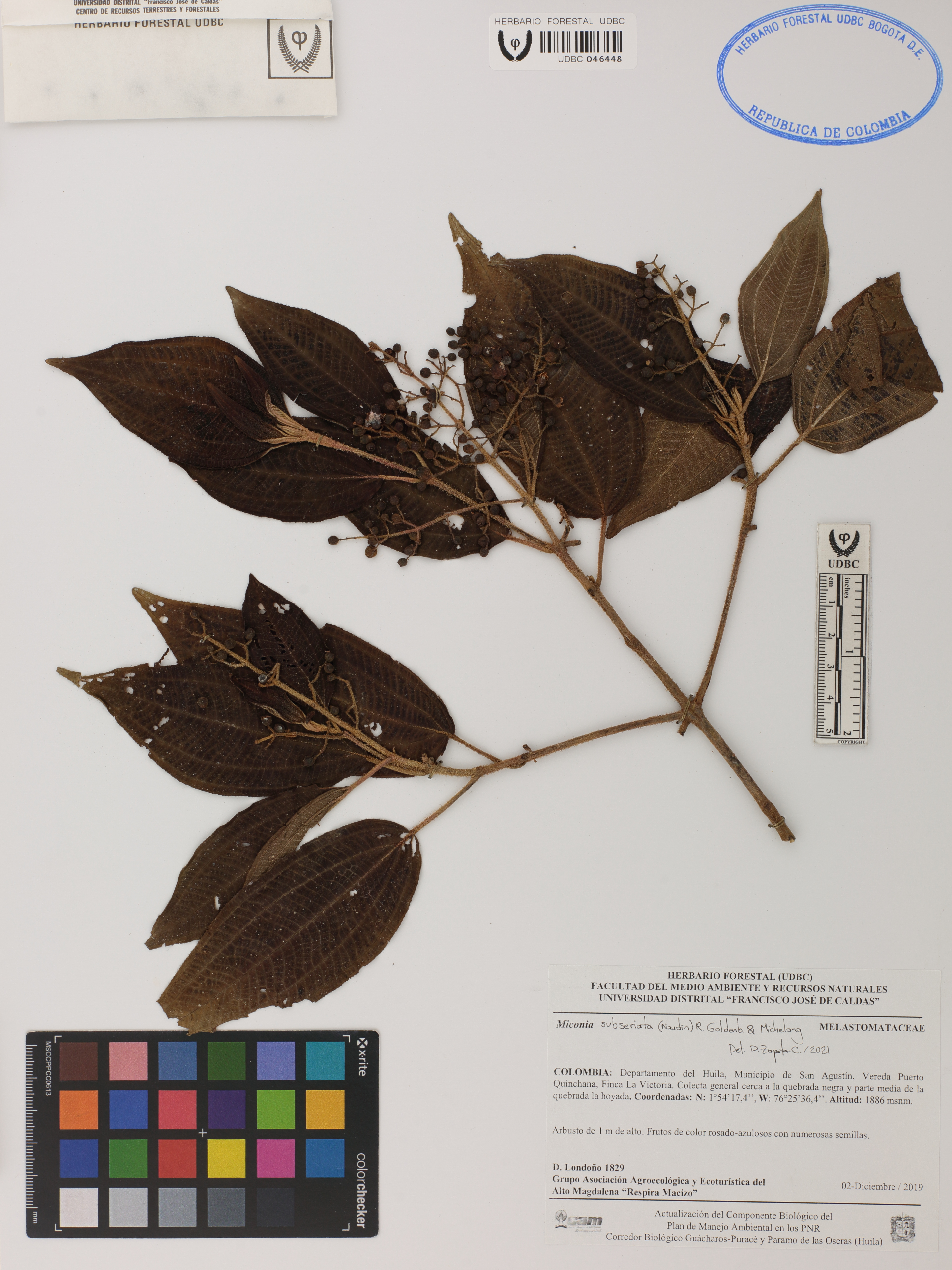 Fotografía del ejemplar Londoño, D. 1829, determinado como Miconia subseriata en el año 2021