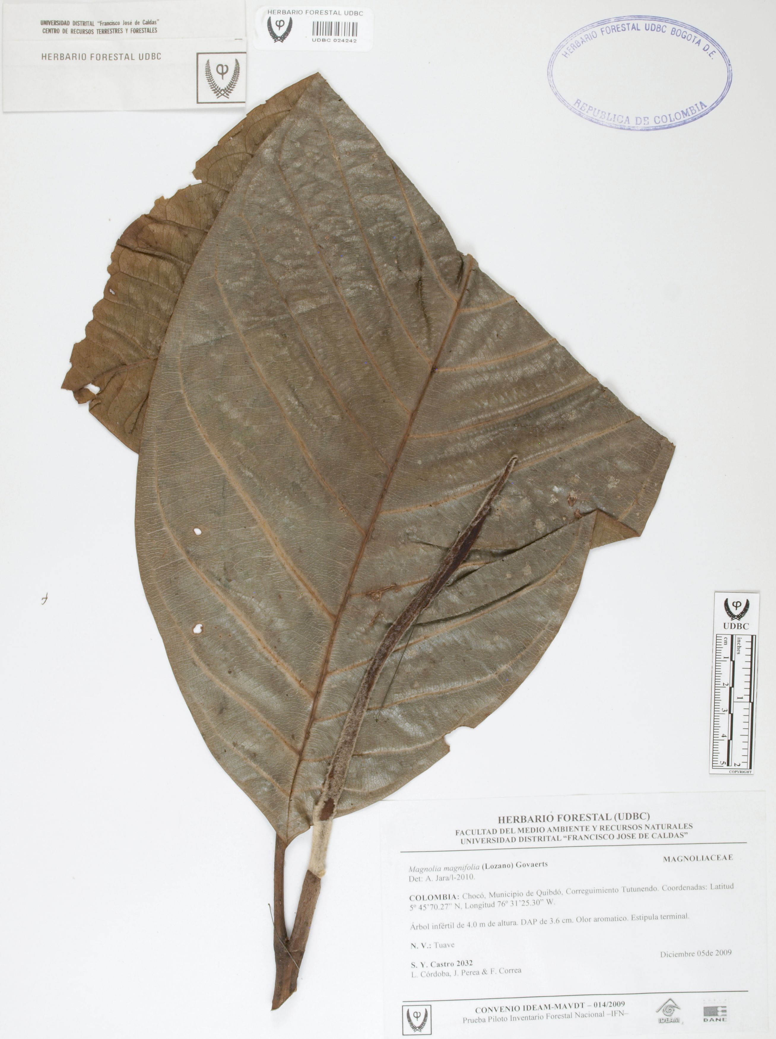 | dc.description | Fotografía del ejemplar Castro, S. 2032, determinado como Magnolia magnifolia en el año 2010 | |