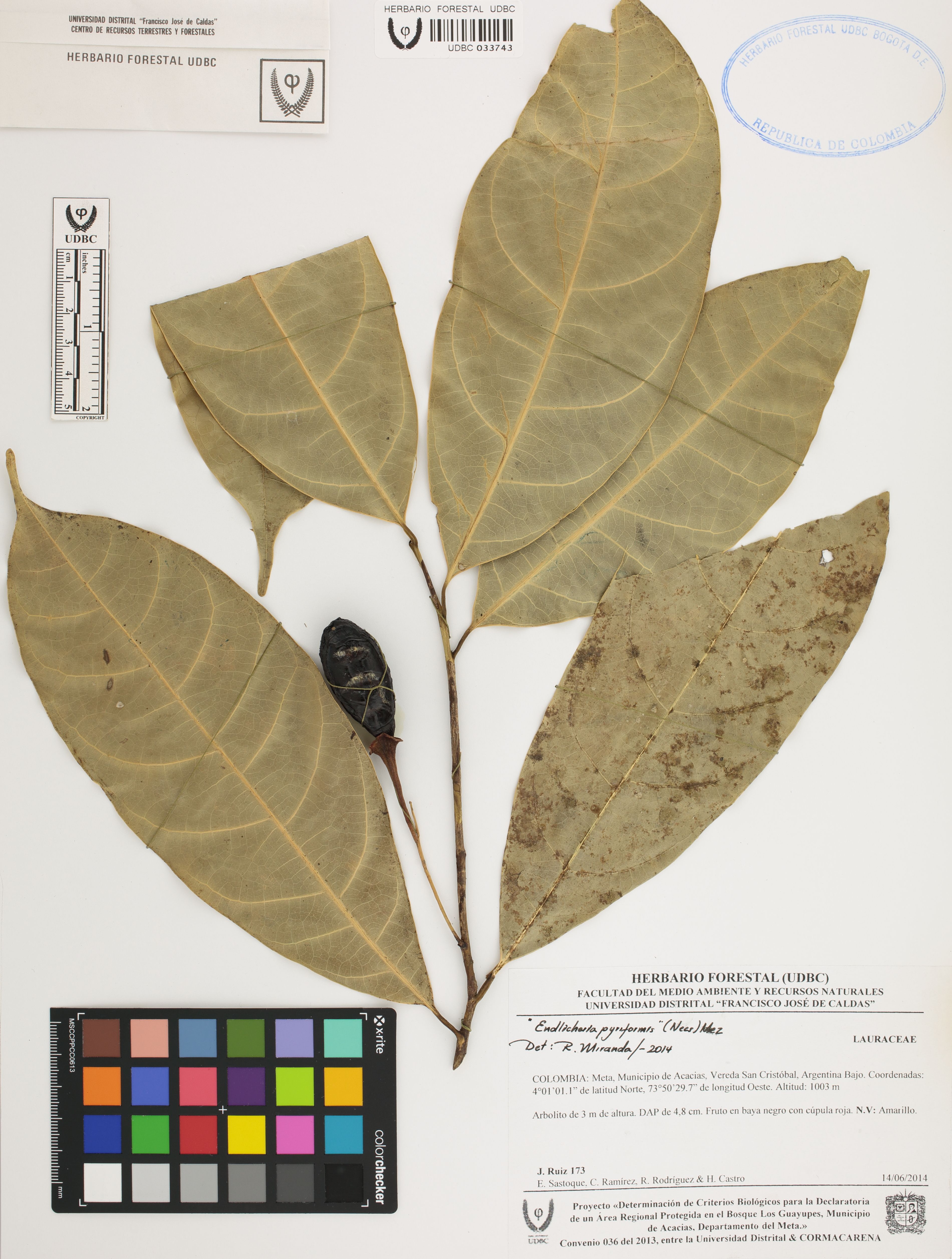 Fotografía del ejemplar Ruiz, J. 173, determinado como Endlicheria pyriformis en el año 2014