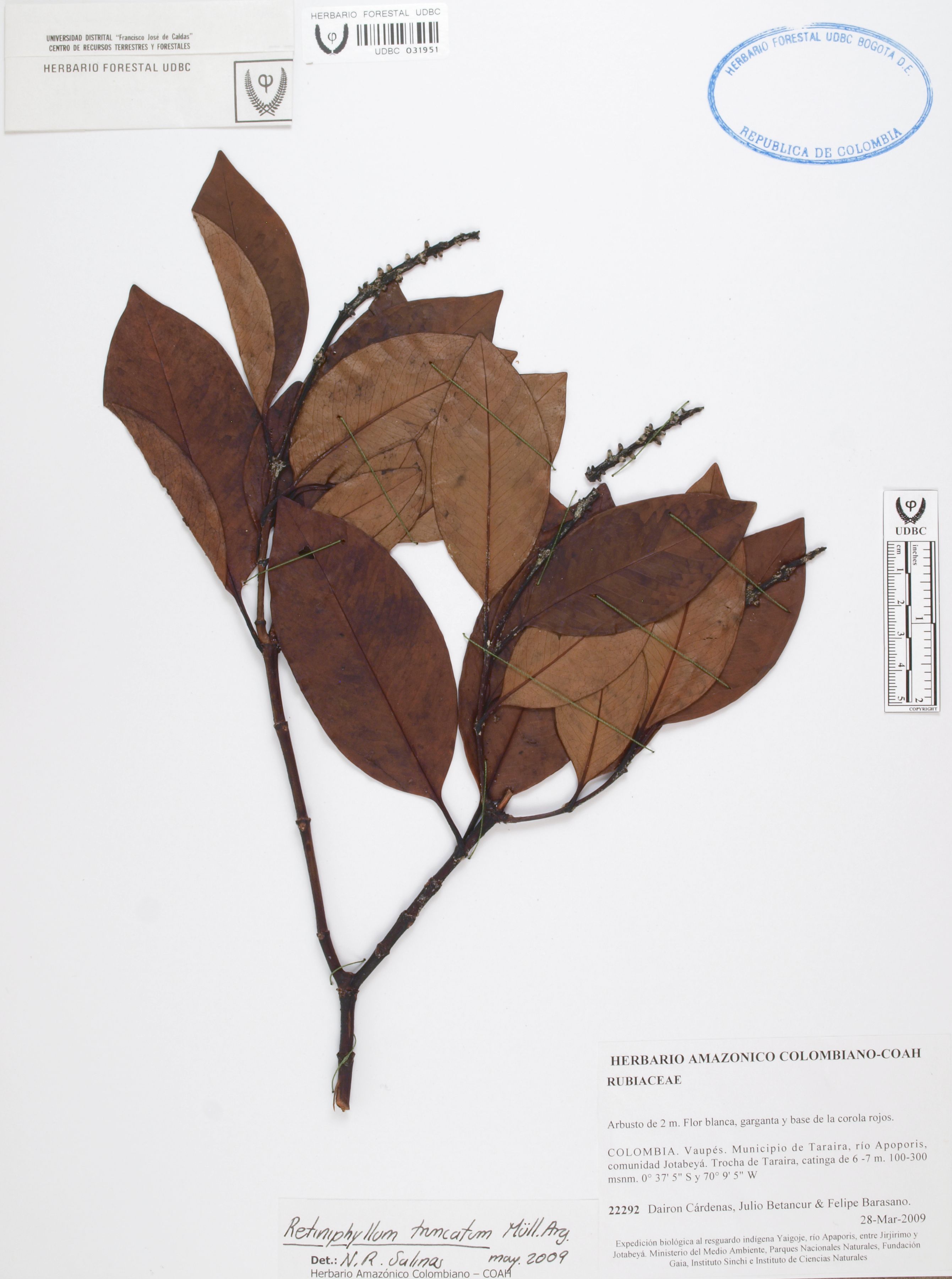 Fotografía del ejemplar Cárdenas, D. 22292, determinado como Retiniphyllum truncatum en el año 2009