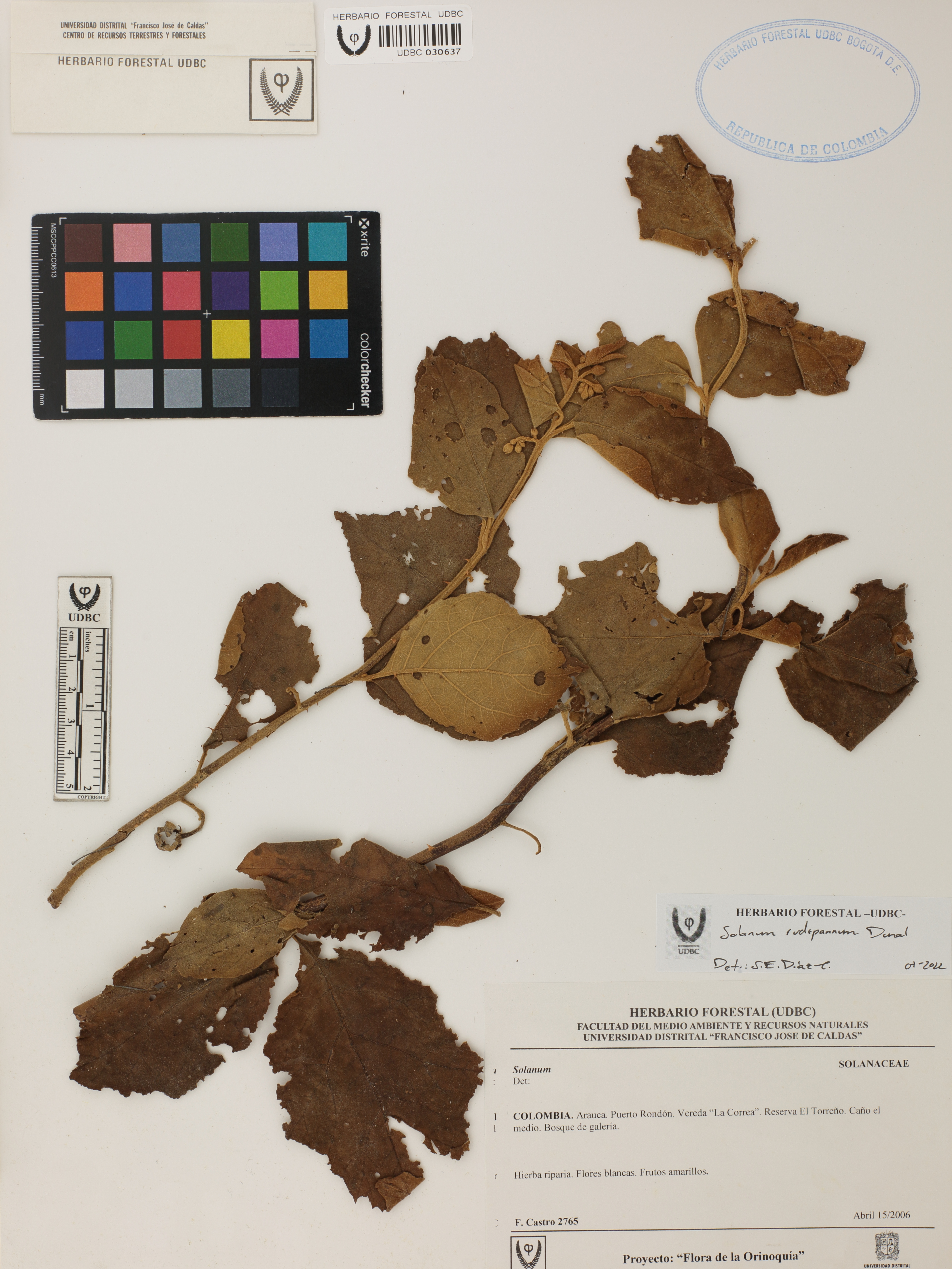 Fotografía del ejemplar Castro, F. 2765, determinado como Solanum rudepannum en el año 2022