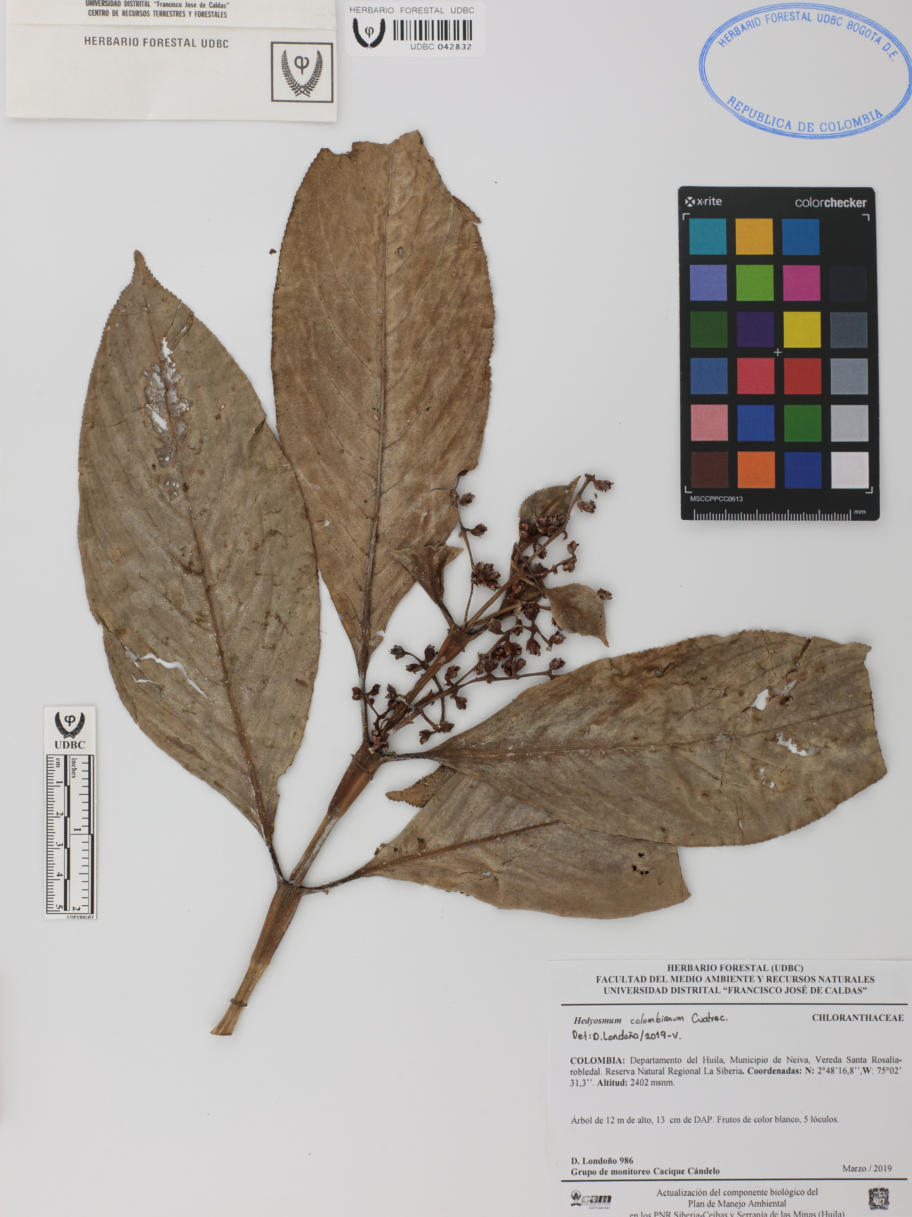 | dc.description | Fotografía del ejemplar Londoño, D. 986, determinado como Hedyosmum colombianum en el año 2019 | |