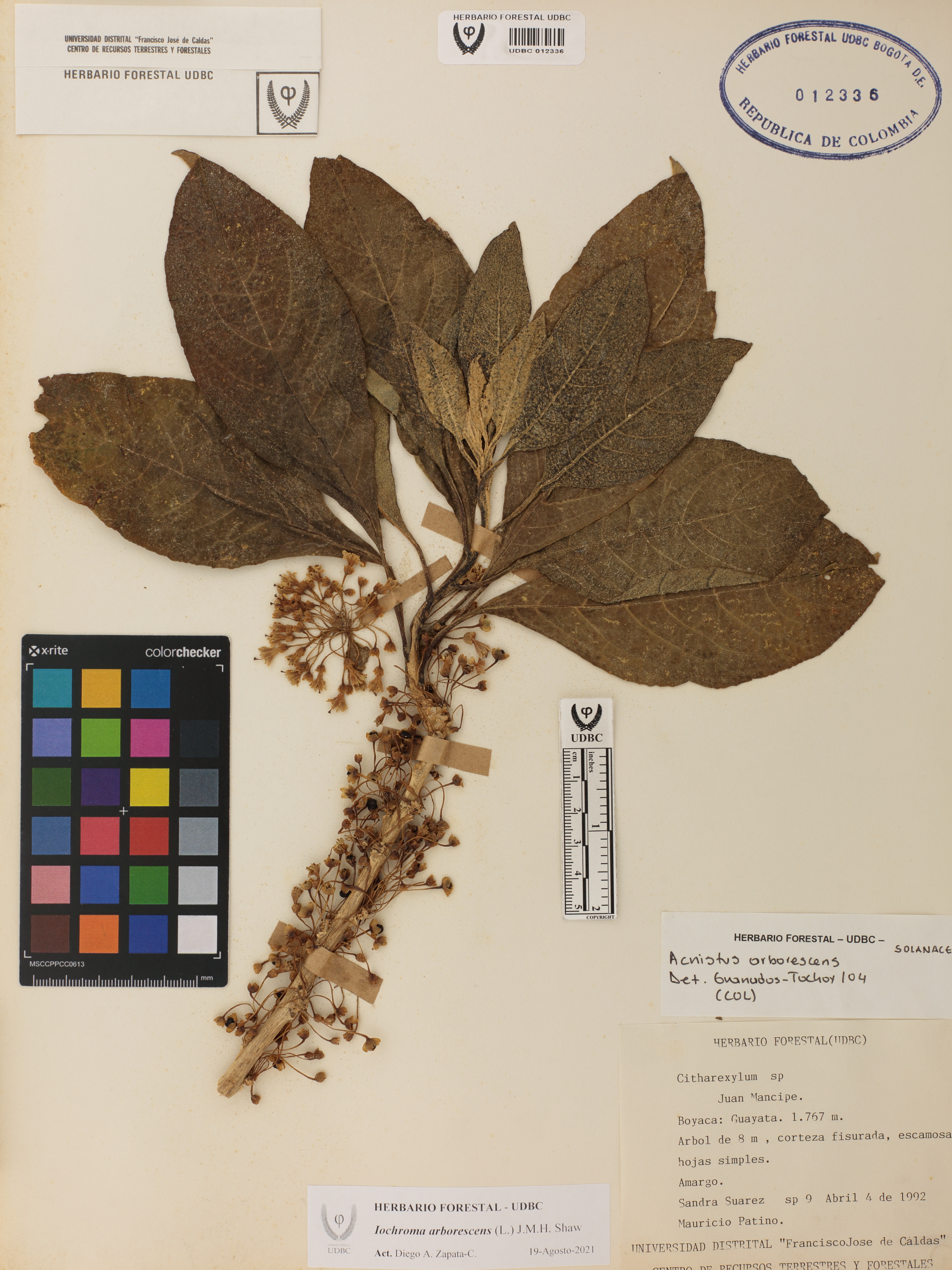 Fotografía del ejemplar Suárez, S. 9, determinado como Iochroma arborescens en el año 2004