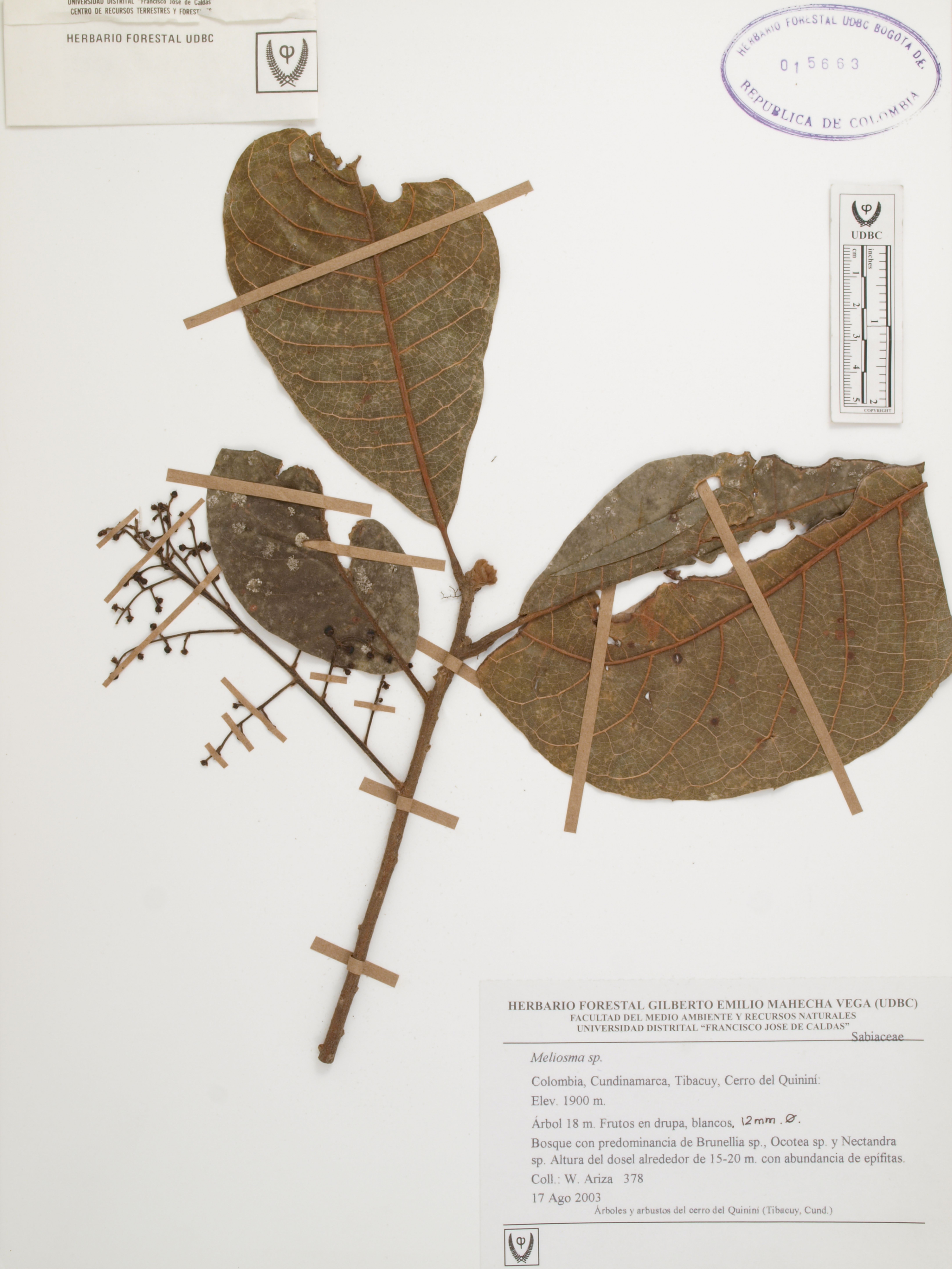 Fotografía del ejemplar Ariza, W. 378, determinado como Meliosma frondosa en el año 2008