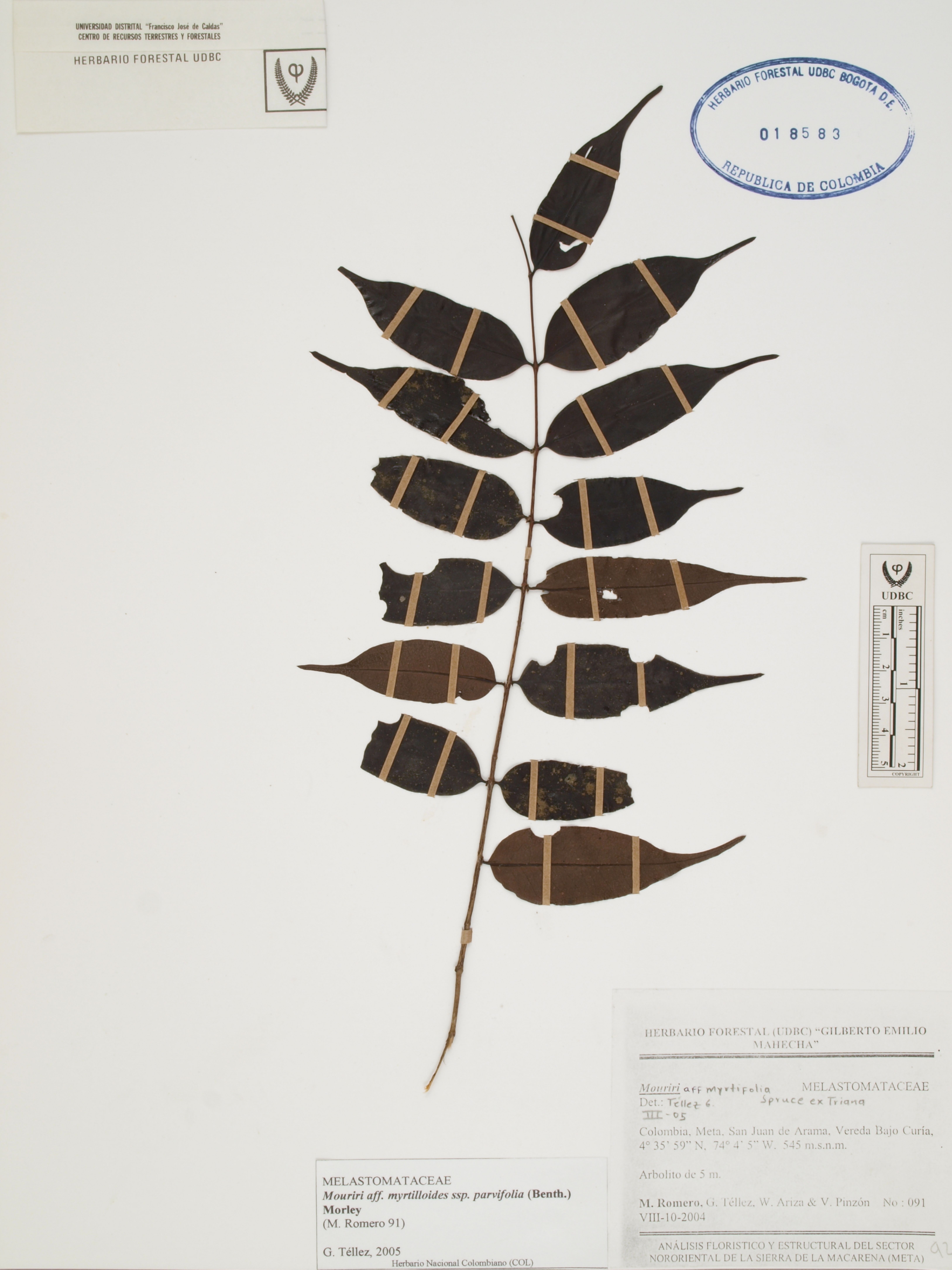 Fotografía del ejemplar Romero, M. 91, determinado como Mouriri myrtilloides subsp. parvifolia en el año 2005
