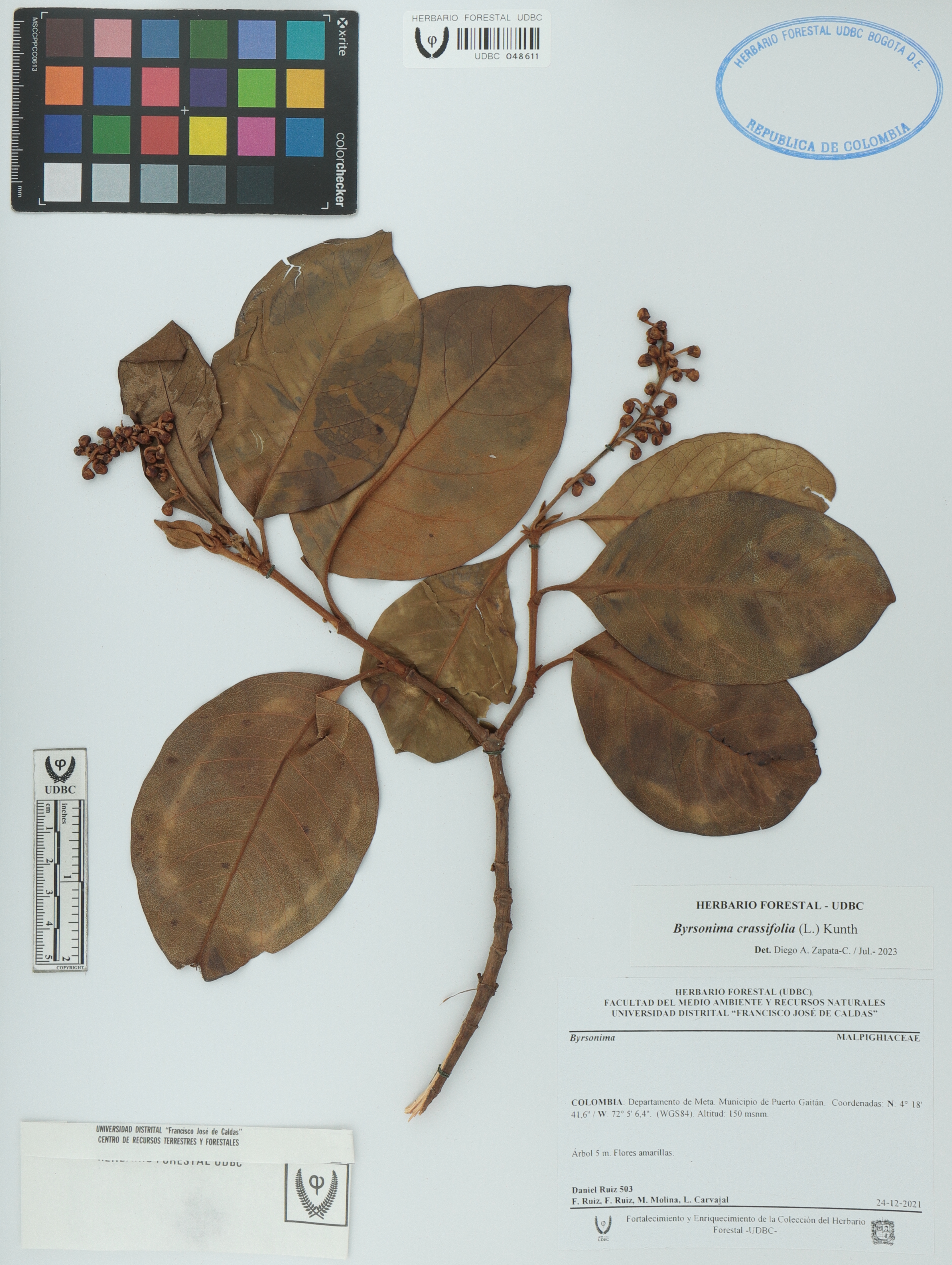 Fotografía del ejemplar Ruiz, Daniel 503, determinado como Byrsonima crassifolia en el año 2023