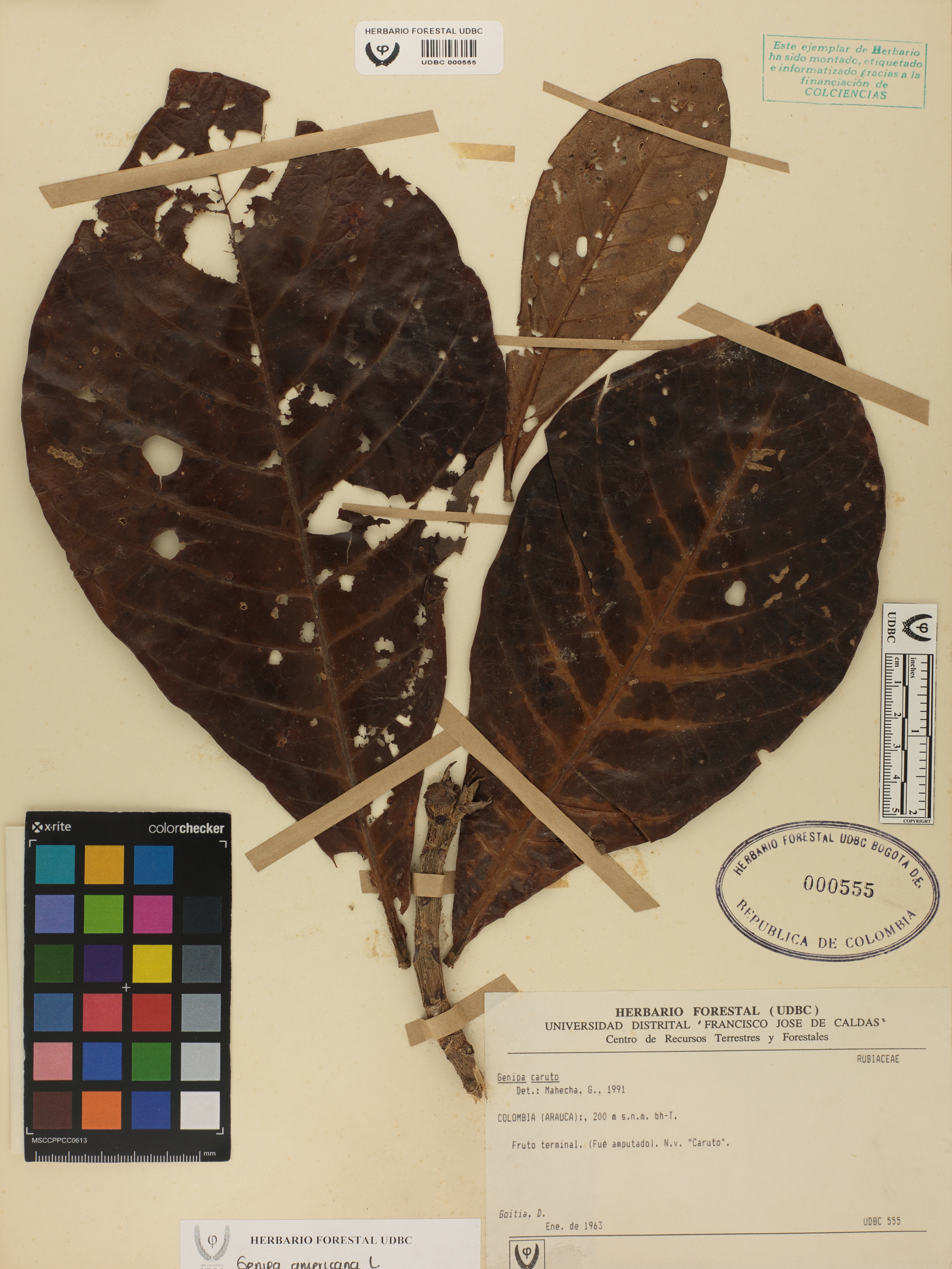Fotografía del ejemplar Goitia, D., determinado como Genipa americana en el año 2018