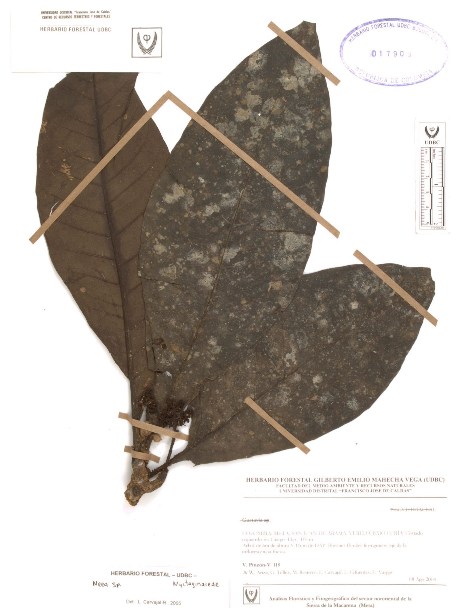 Fotografía del ejemplar Pinzón, V. 118, determinado como Neea sp. en el año 2005