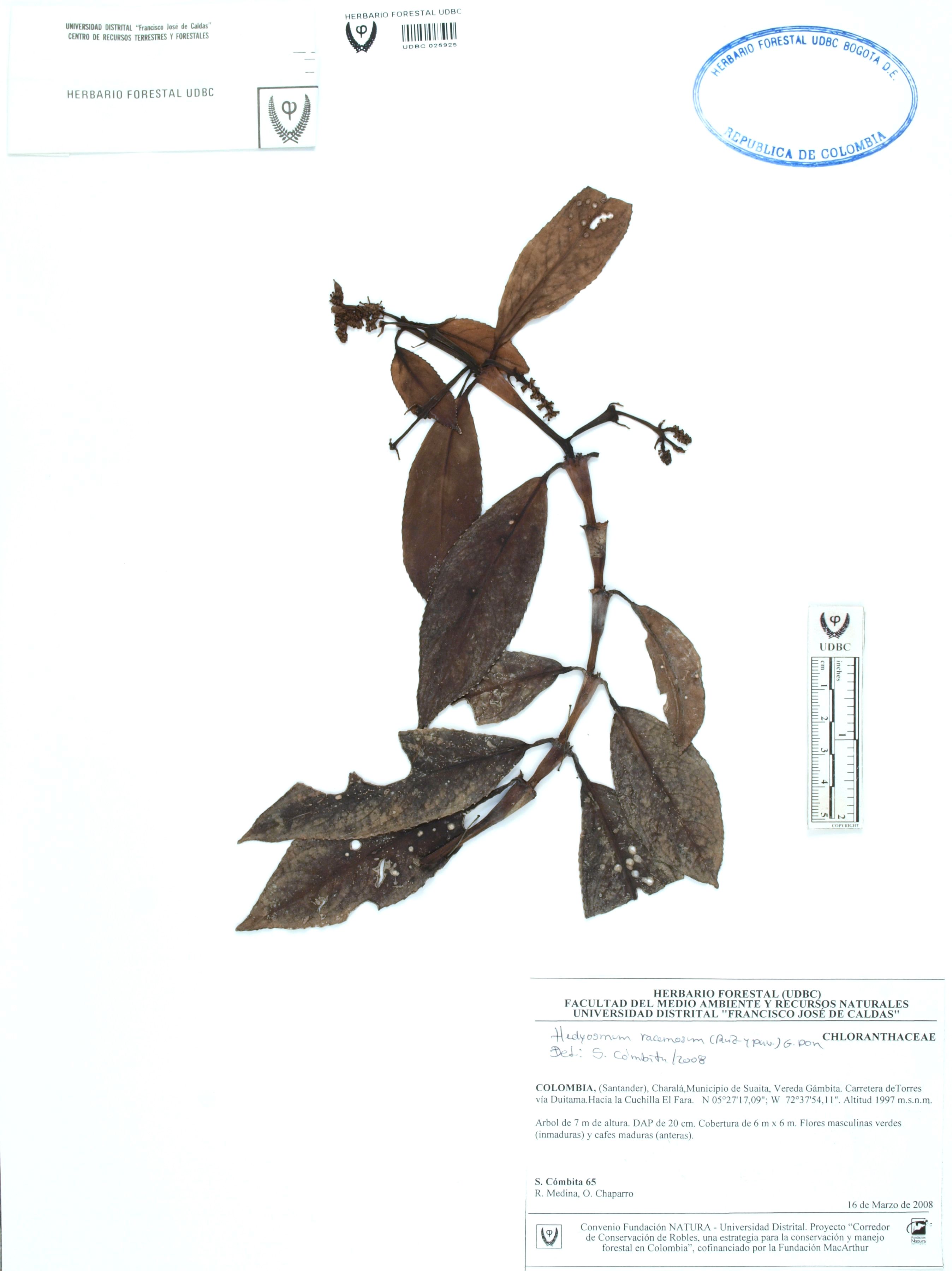 Fotografía del ejemplar Cómbita, S. 65, determinado como Hedyosmum racemosum en el año 2008