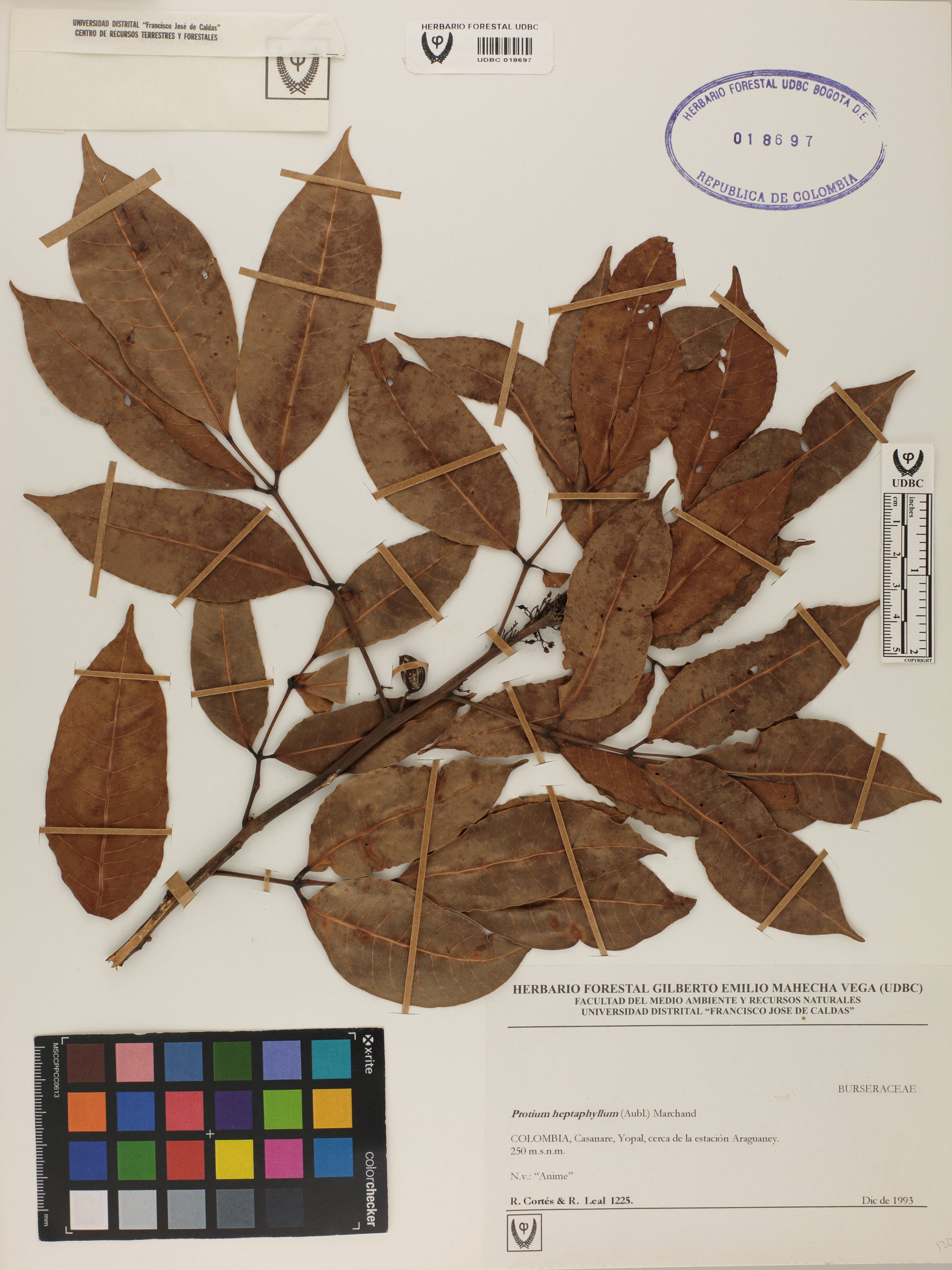 Fotografía del ejemplar Cortés-B., R. 1225, determinado como Protium heptaphyllum