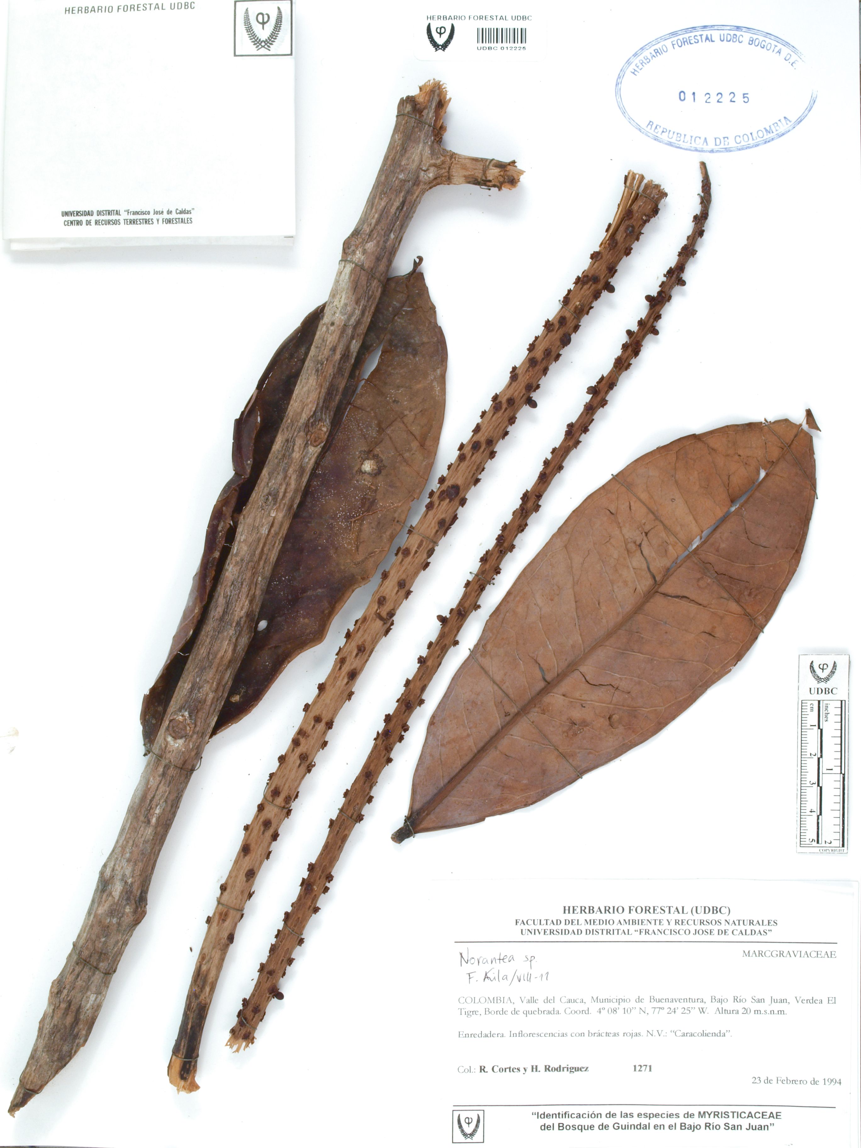 Fotografía del ejemplar Cortés-B., R. 1271, determinado como Norantea sp. en el año 2011