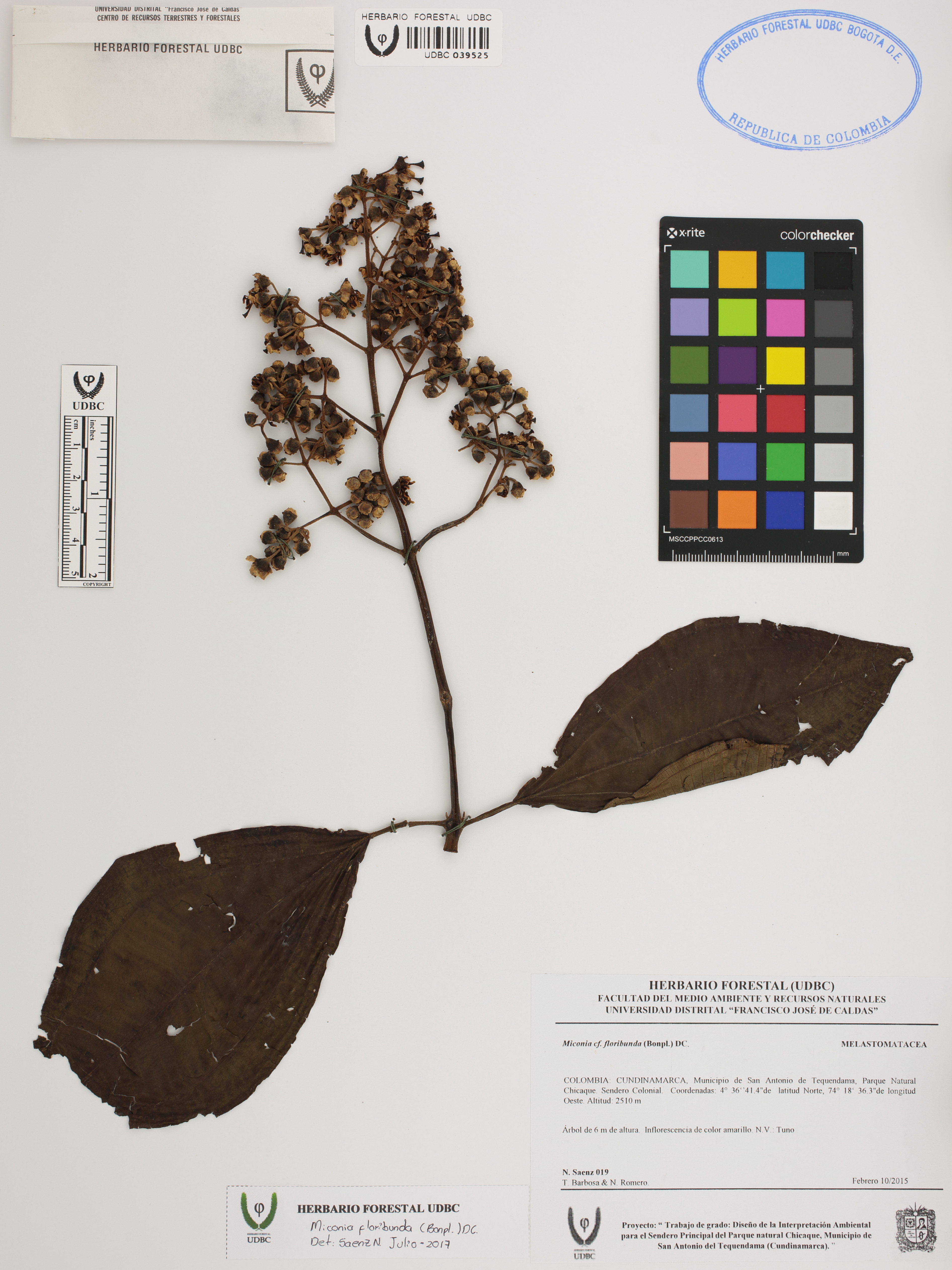 Fotografía del ejemplar Sáenz, N. 19, determinado como Miconia floribunda en el año 2017