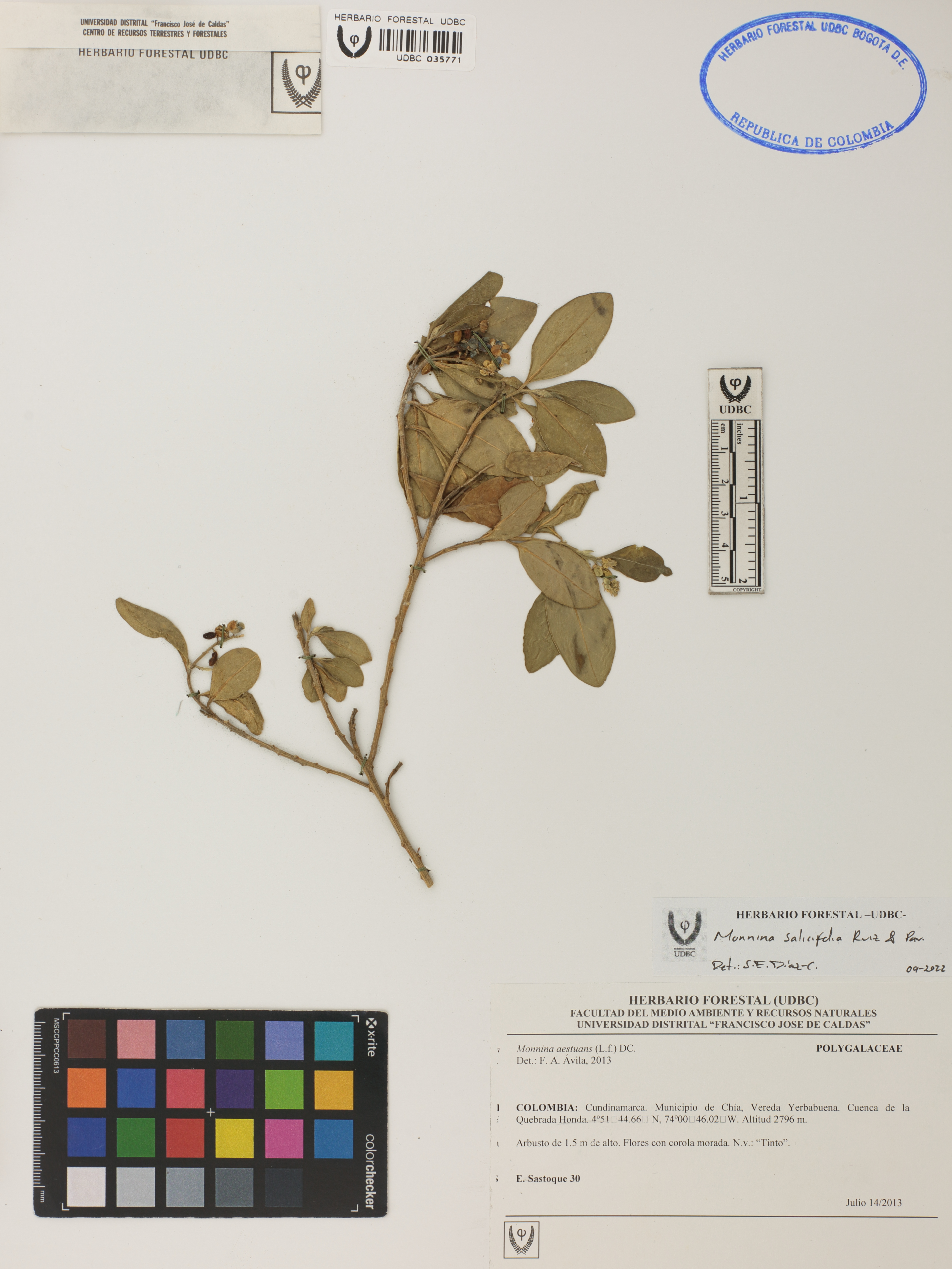 Fotografía del ejemplar Sastoque, E. 30, determinado como Monnina salicifolia en el año 2022