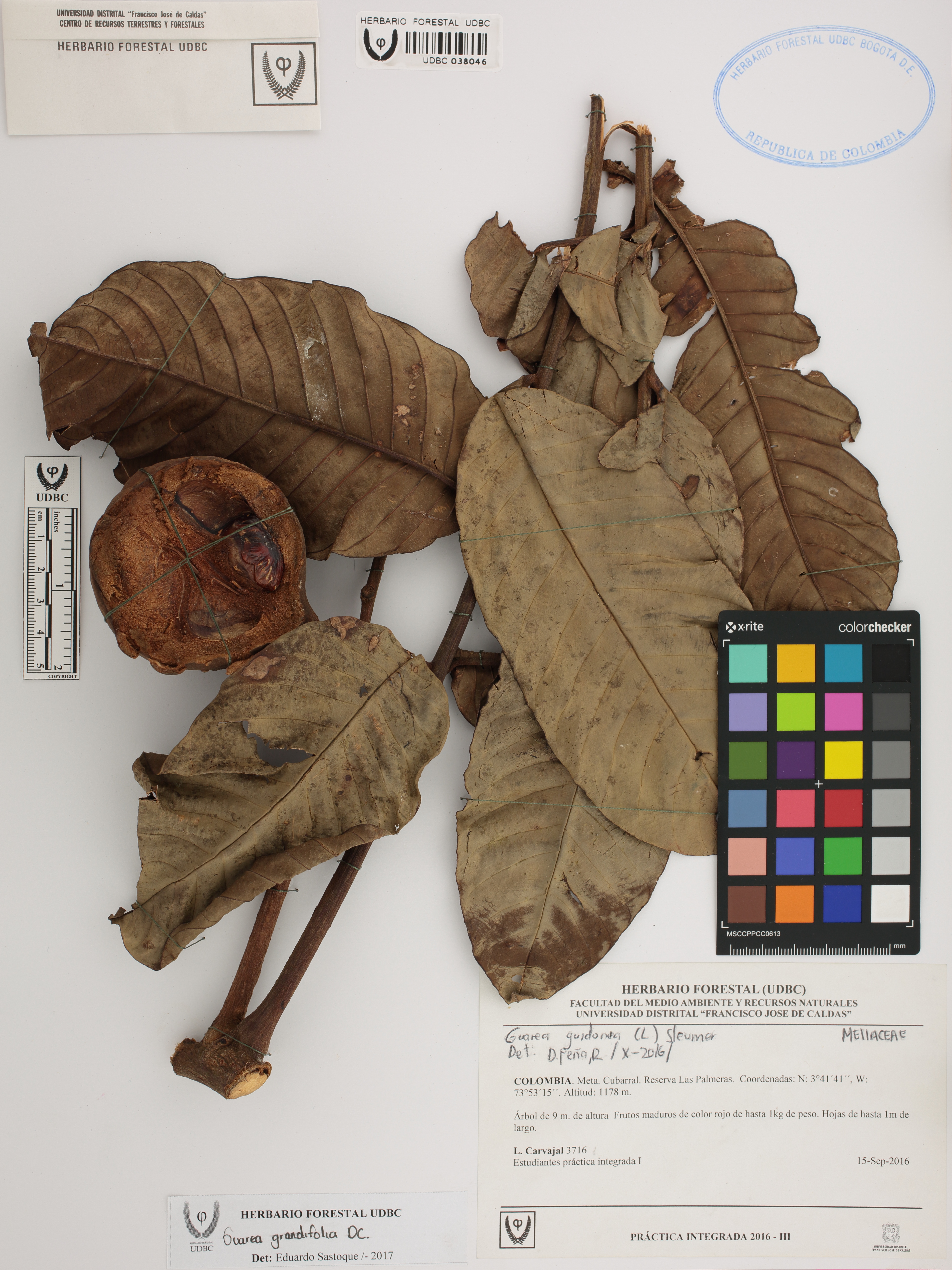 Fotografía del ejemplar Carvajal, L. 3716, determinado como Guarea grandifolia en el año 2017