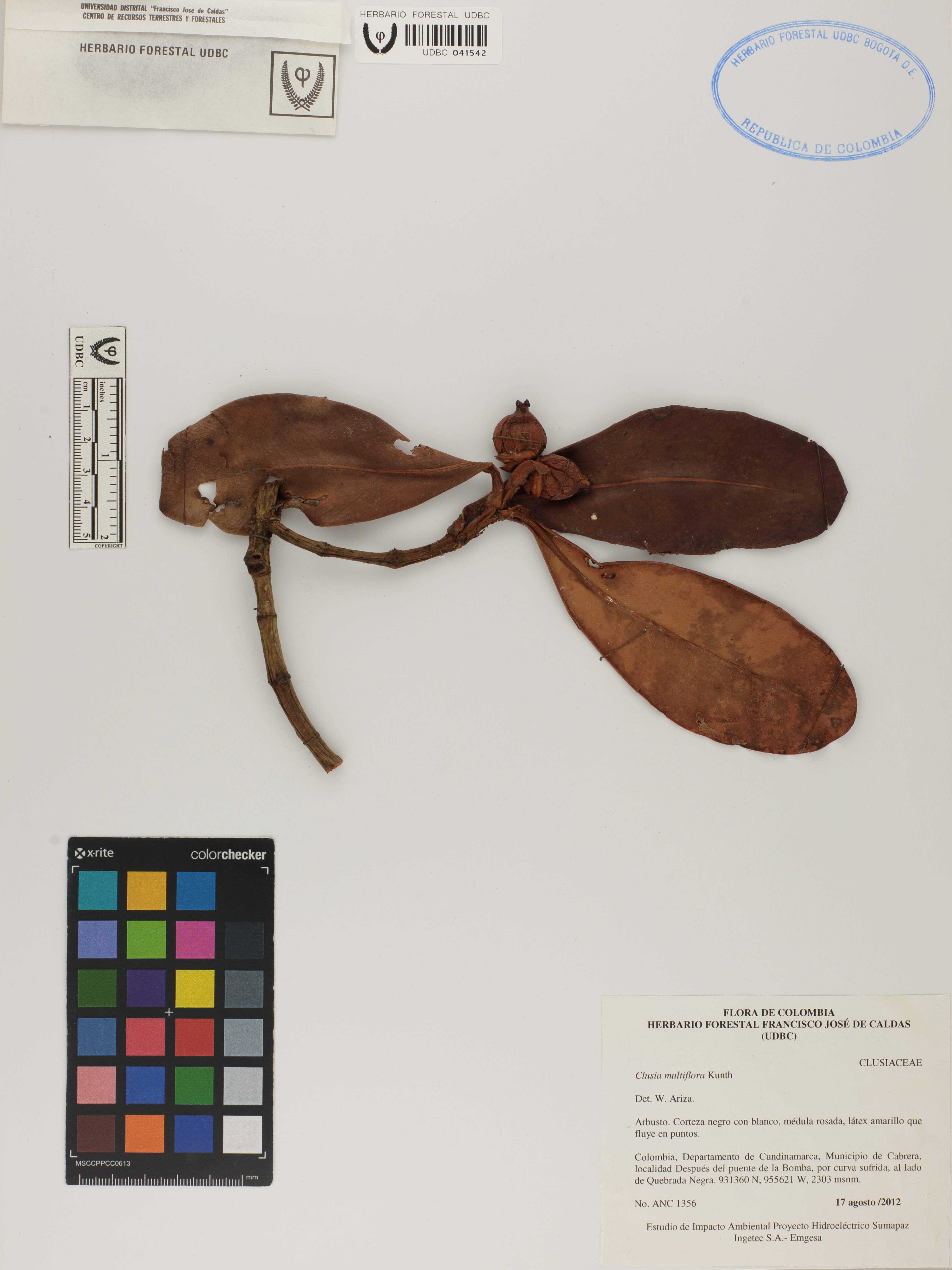Fotografía del ejemplar SD 1356, determinado como Clusia multiflora