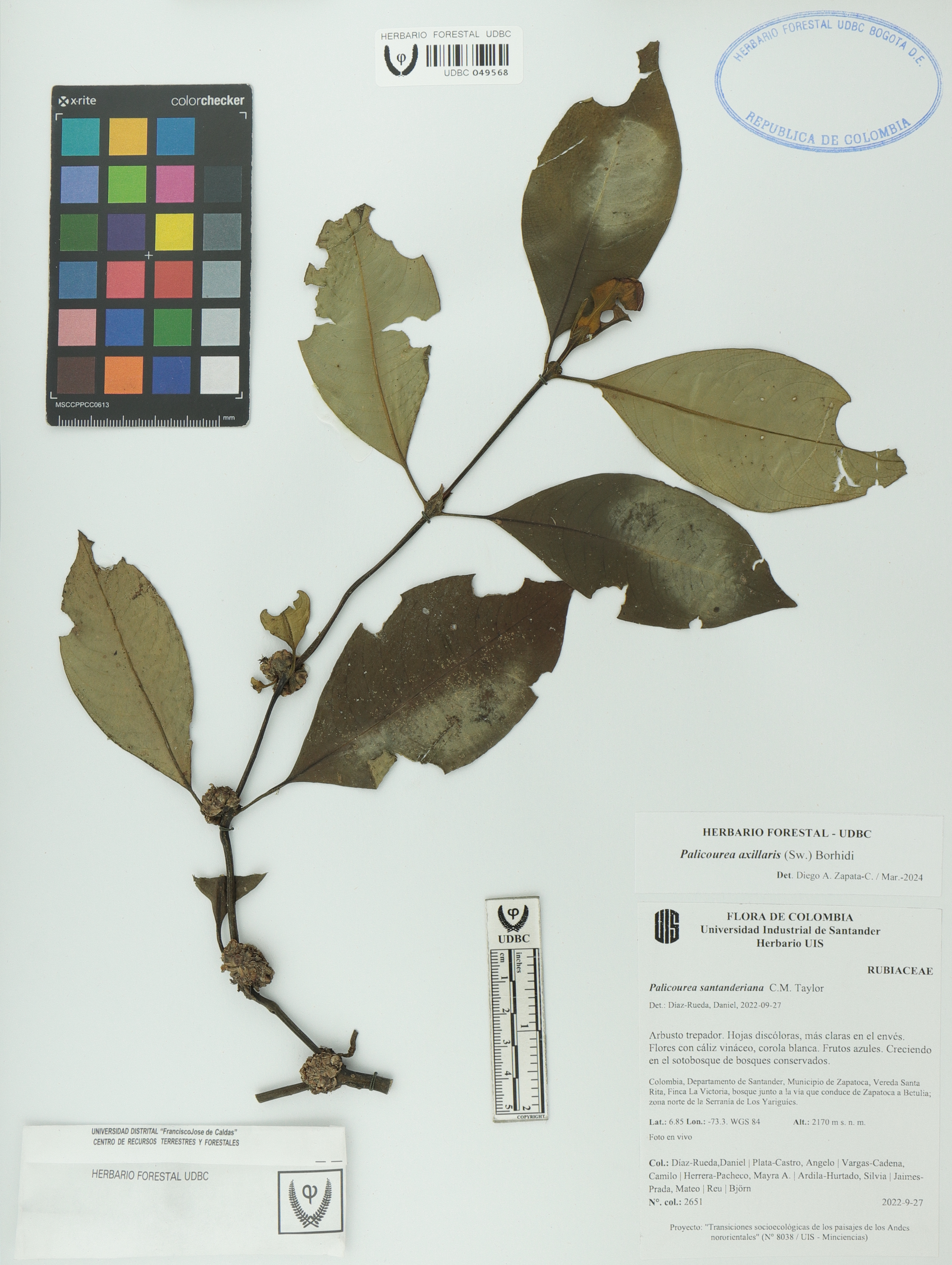 Fotografía del ejemplar Díaz-Rueda, D. 2651, determinado como Palicourea axillaris en el año 2023