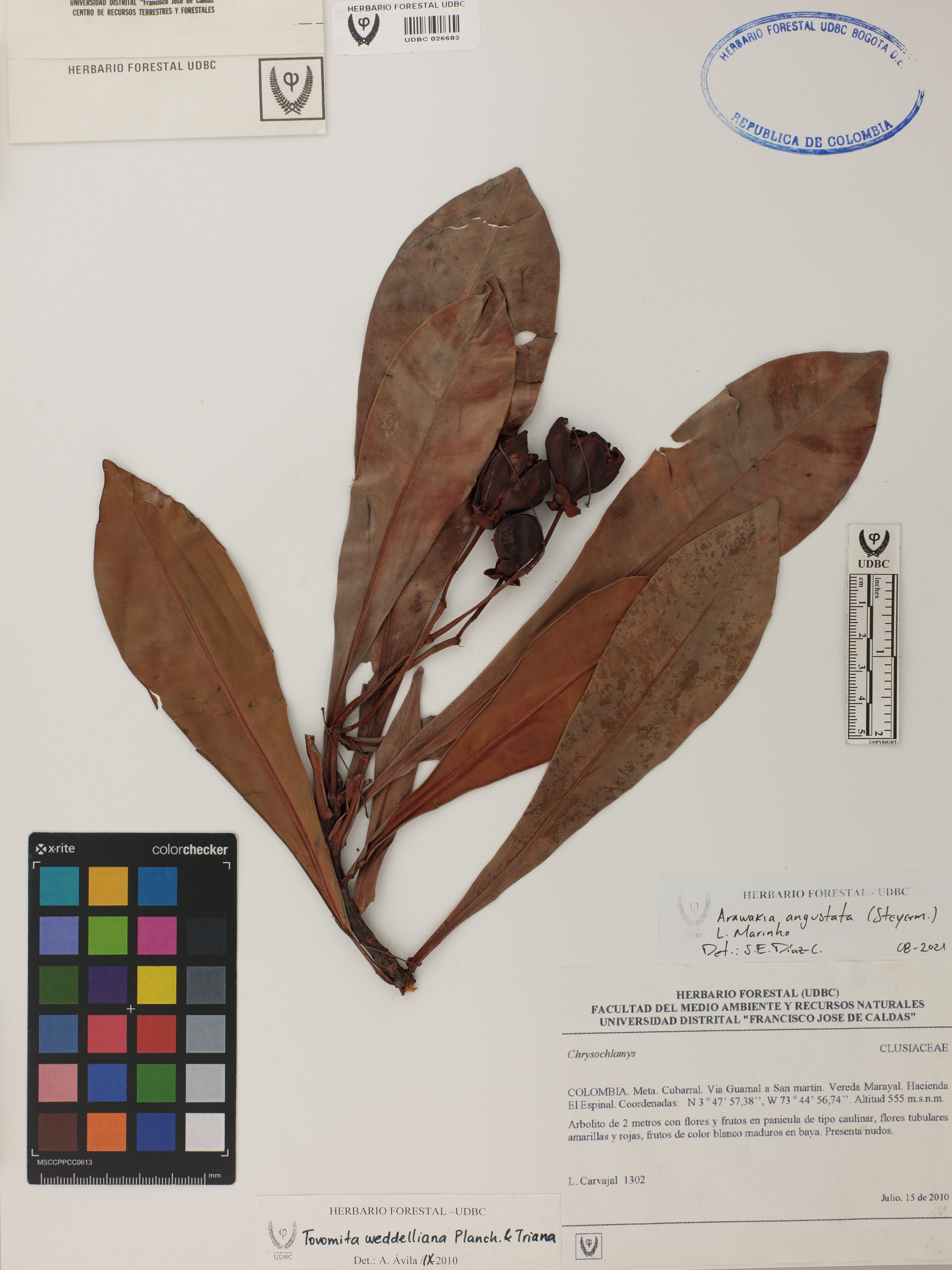 Fotografía del ejemplar Carvajal, L. 1302, determinado como Arawakia angustata en el año 2021