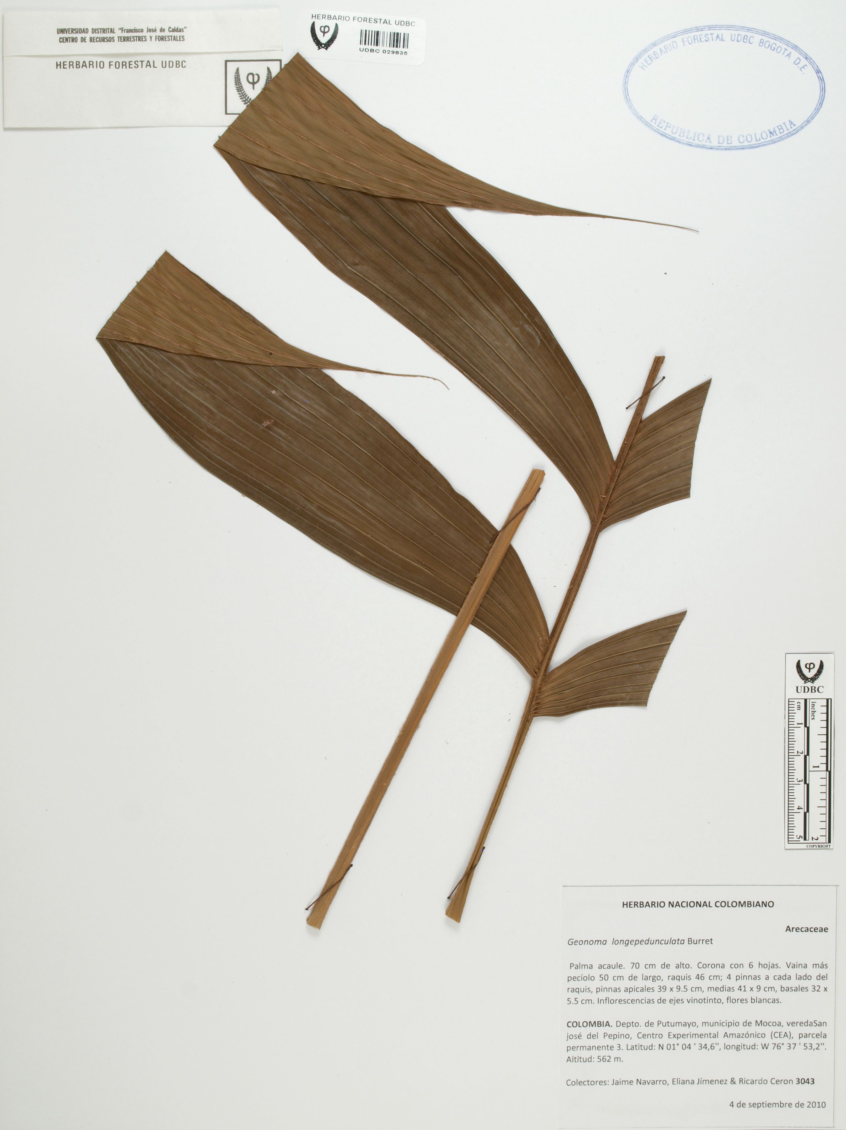 | dc.description | Fotografía del ejemplar Navarro, J. 3043, determinado como Geonoma longepedunculata | |