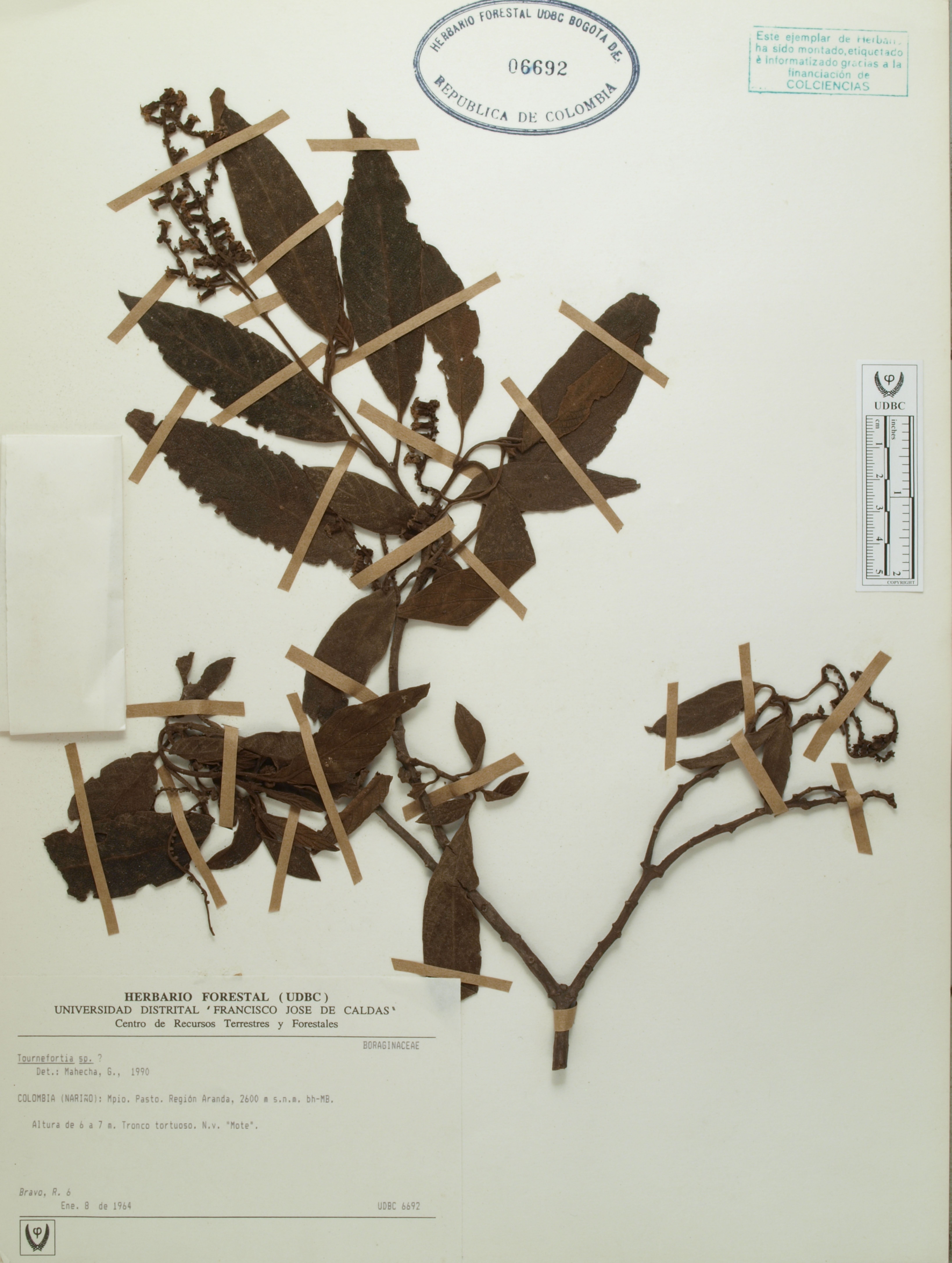 Fotografía del ejemplar Bravo, R. 6, determinado como Tournefortia sp.