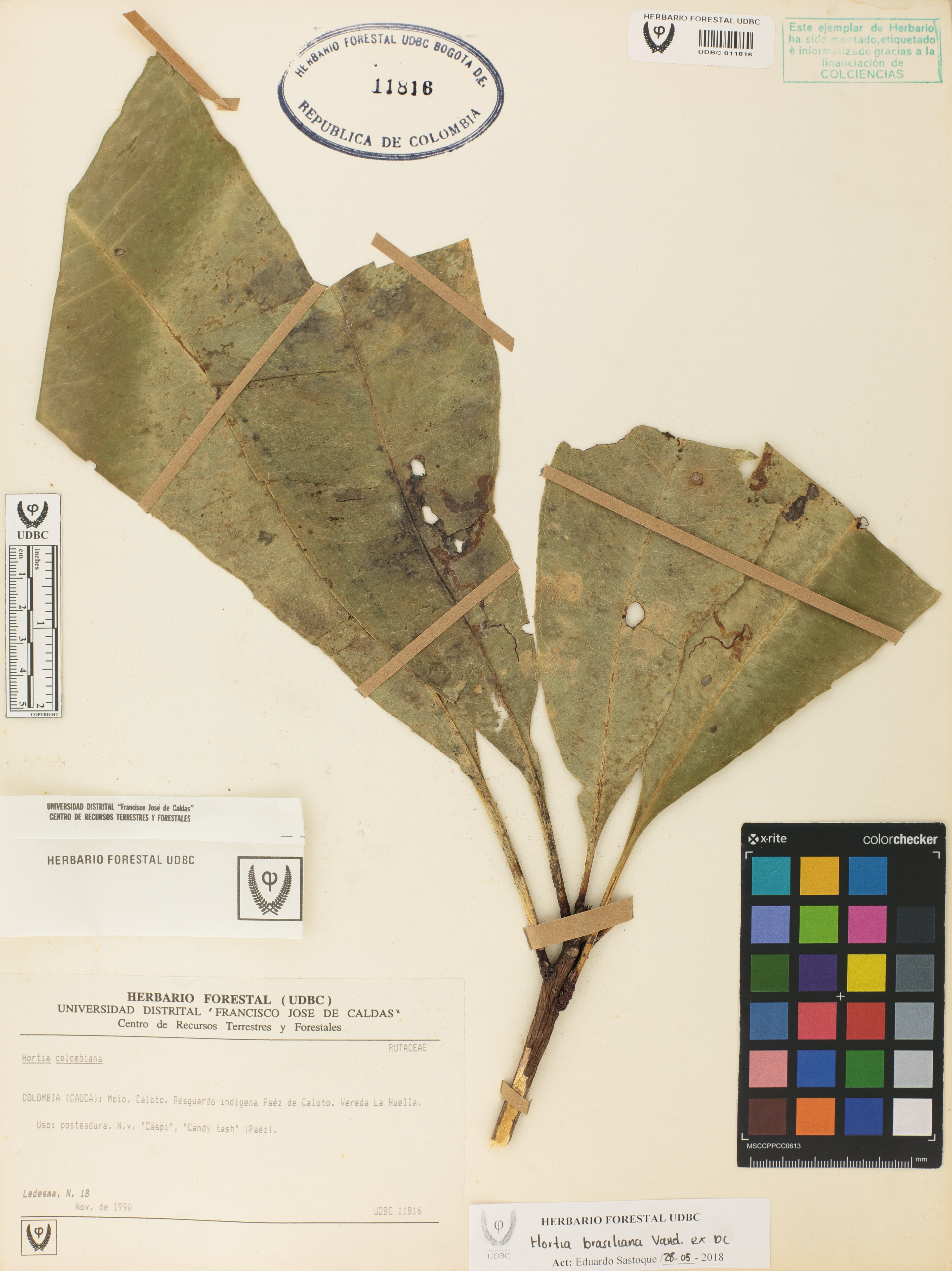 Fotografía del ejemplar Ledesma, N. 18, determinado como Hortia brasiliana