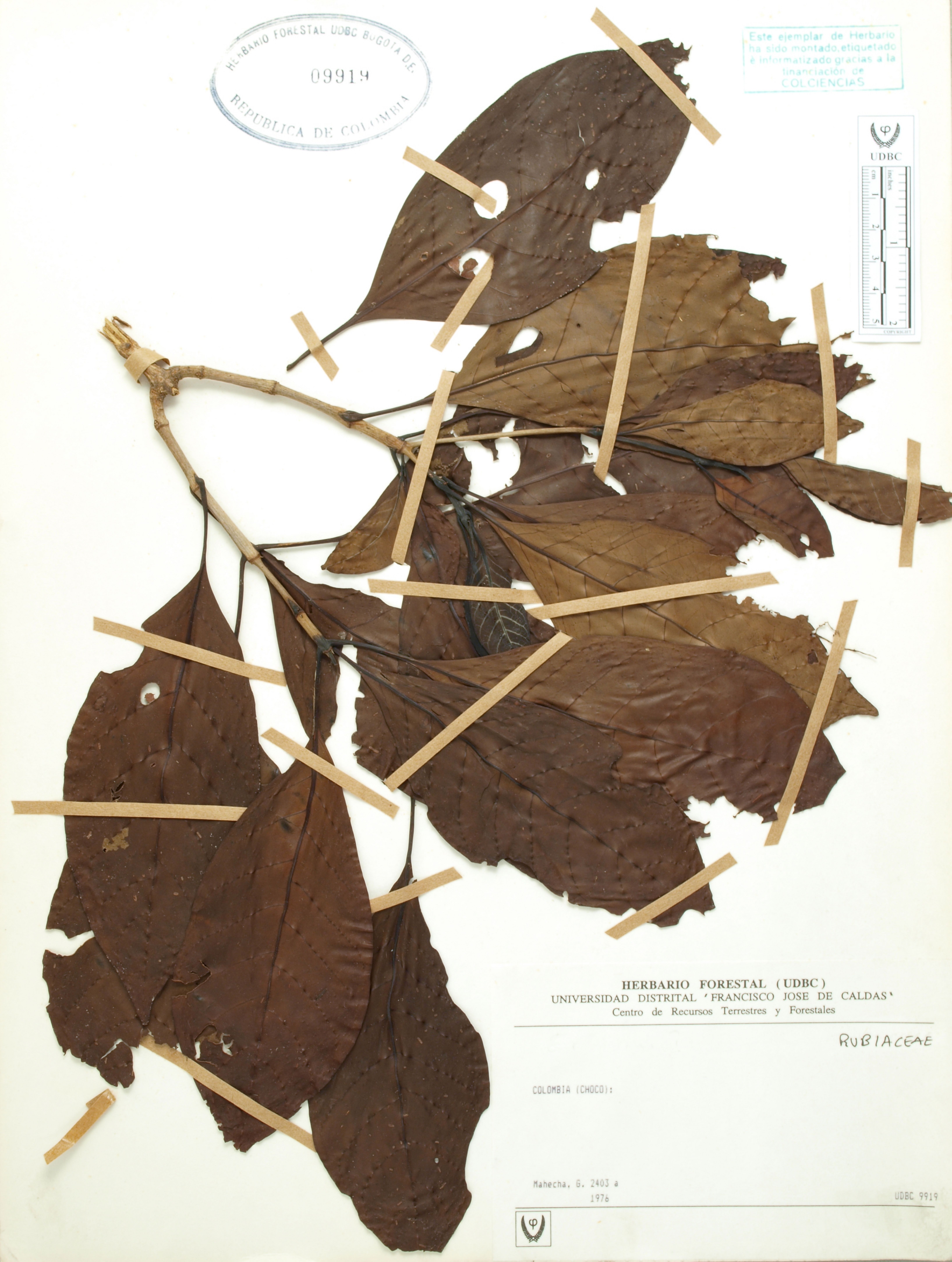 Fotografía del ejemplar Mahecha, G. 2403, determinado como Rubiaceae
