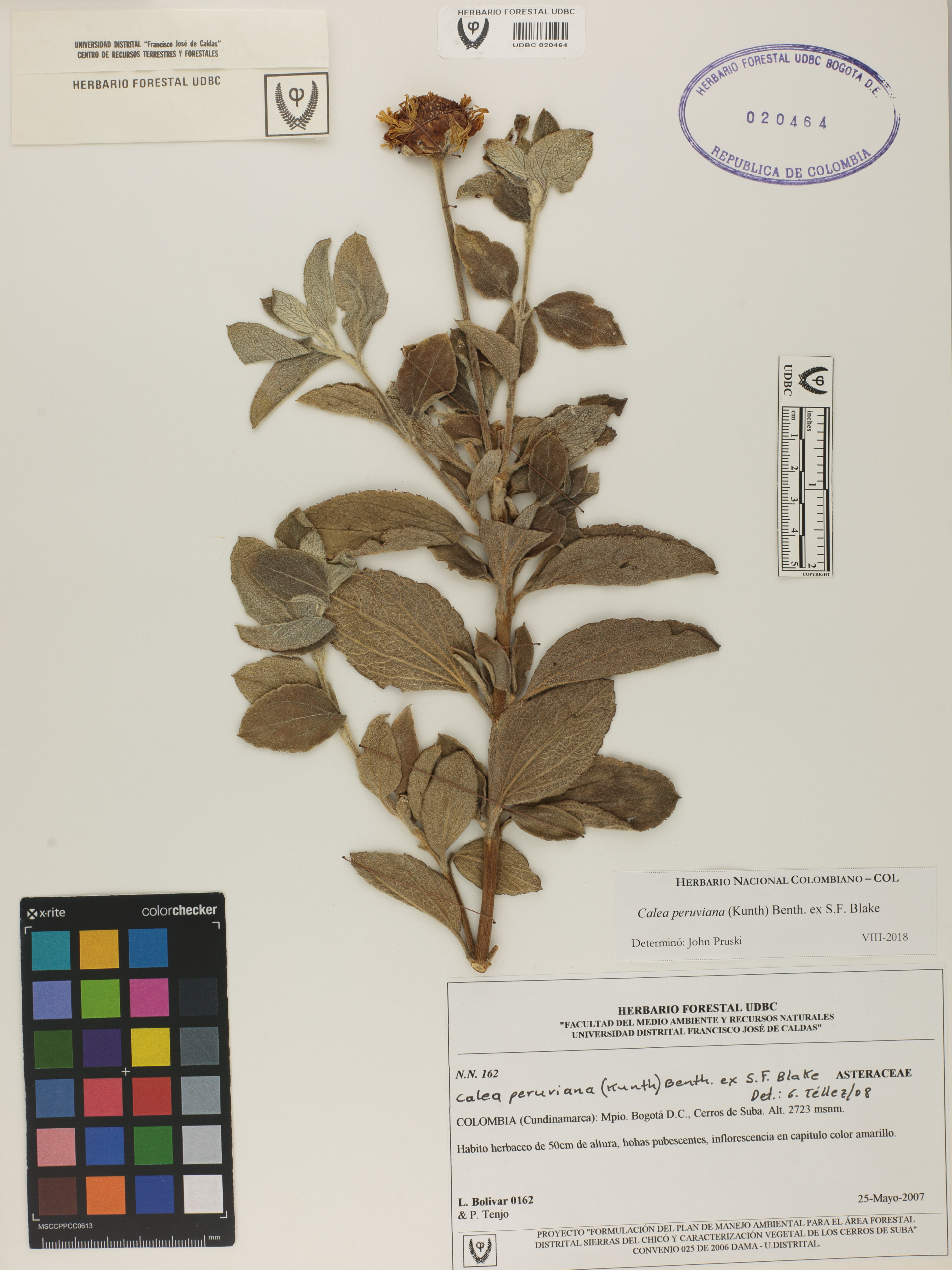 Fotografía del ejemplar Bolívar, L. 162, determinado como Calea peruviana en el año 2008